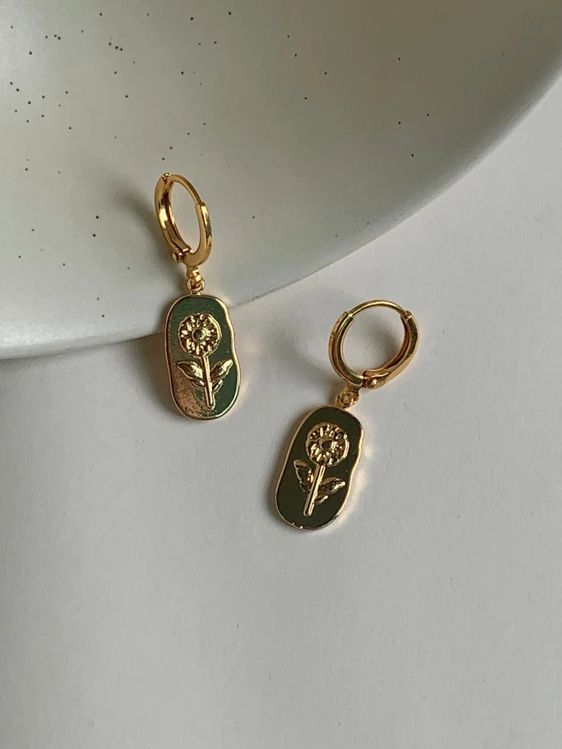 GABI STUDIO / Charming flower pendant huggie hoops.