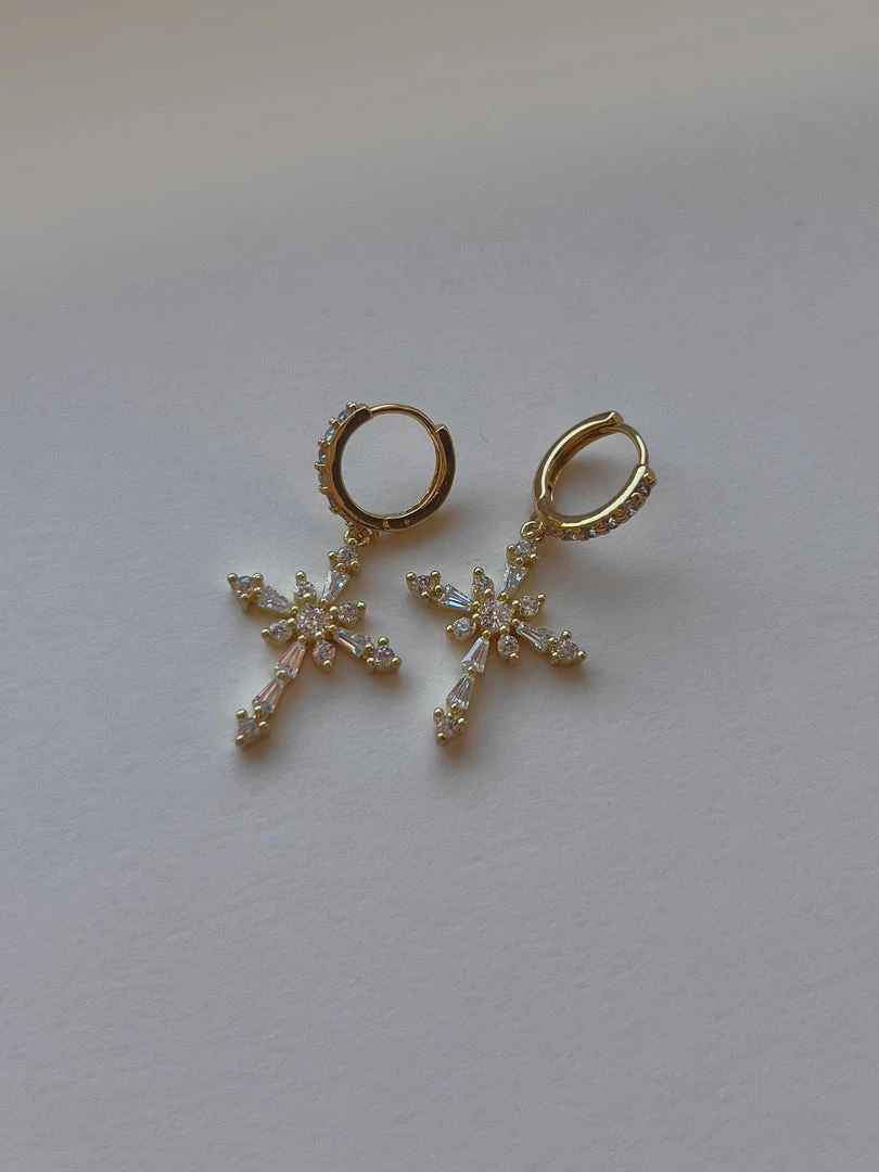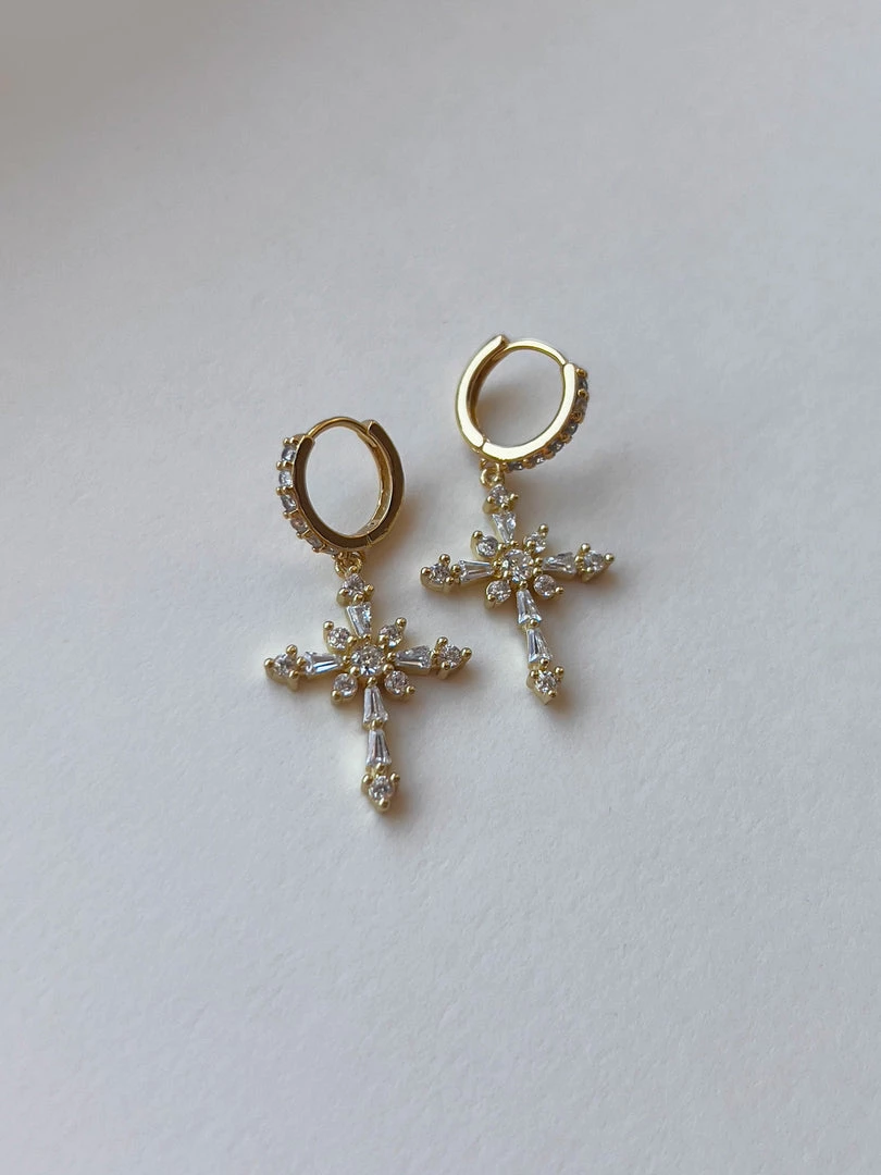 GABI STUDIO / Precious cross pendants encrusted with sparkly cubic zirconia on pavé (lined with cubic zirconia) huggies.