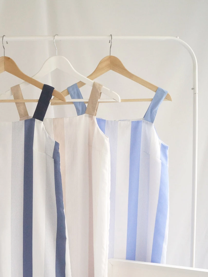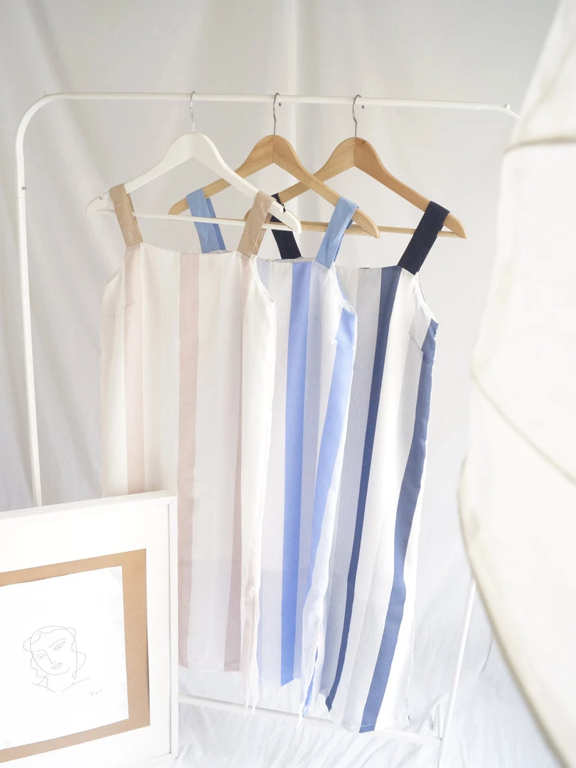 Beautiful Simplicity: our Holly Dress is a marriage of comfort and good design. With a vertical stripes pattern that renders a taller appearance, together with a slit for easy movement and concealed zipper at the back – its easy-to-wear structure makes this a wardrobe heroine. Great as both work wear and casual wear.Â