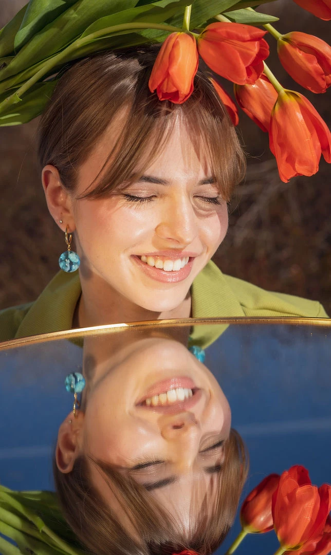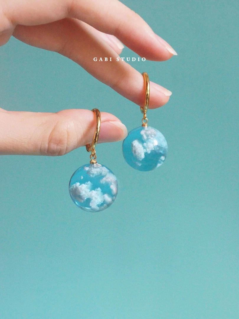 GABI STUDIO / Head in the Clouds: GoldĀ hoops with big dreamy cloud spheresĀ made from resin.Ā