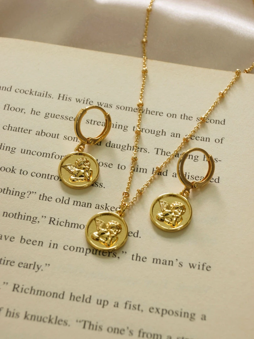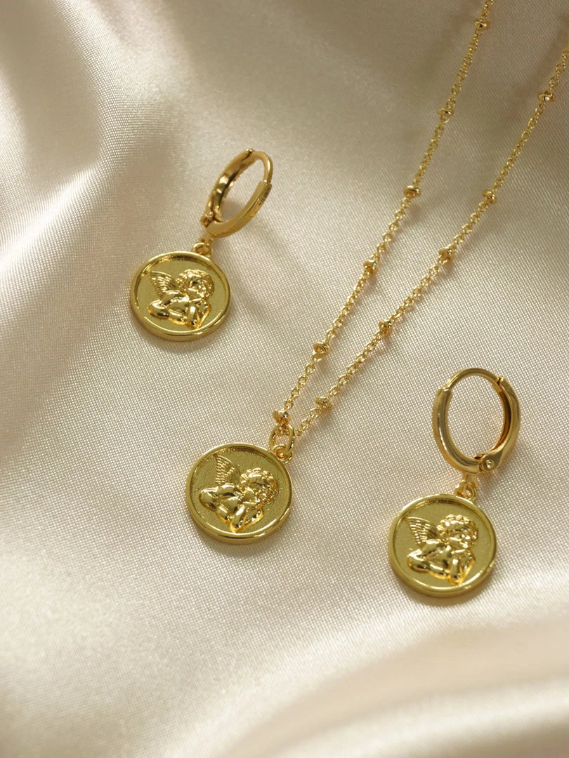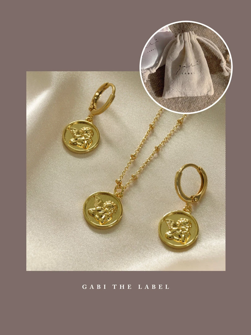 Set of Necklace + Huggies (pair) / AĀ preciousĀ matching cupid set, all wrapped up in a cute little pouch. Perfect for gifting!