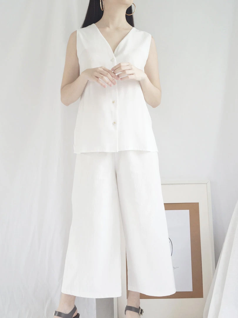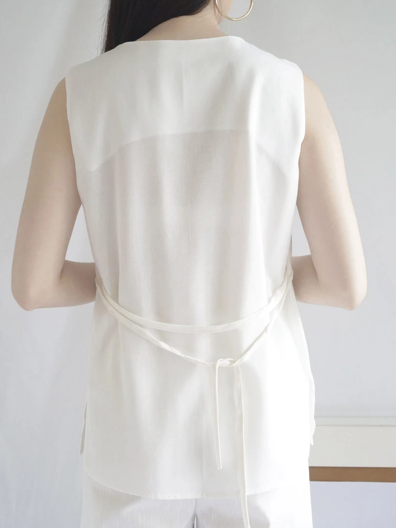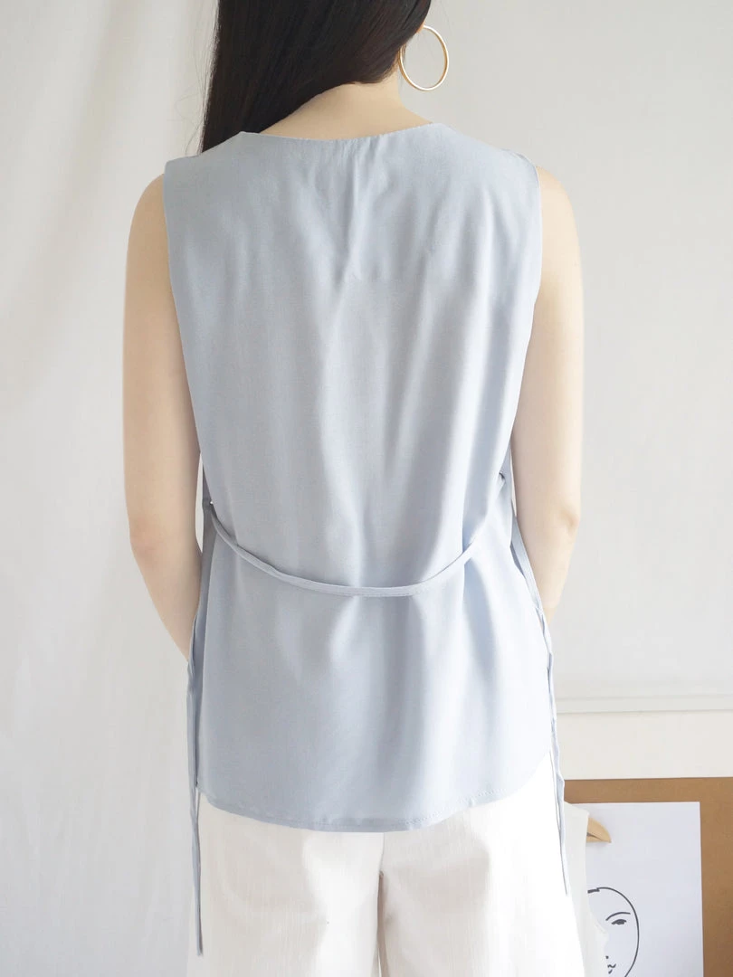 An absolute wardrobe essential in the form of a chic sleeveless blouse with a flattering V-neck front. Wear it 2 ways – tucked in or untucked for a variety of looks. Pairs beautifully with wide-legged trousers for that ultra refined, chic look – great for both the office and weekends.