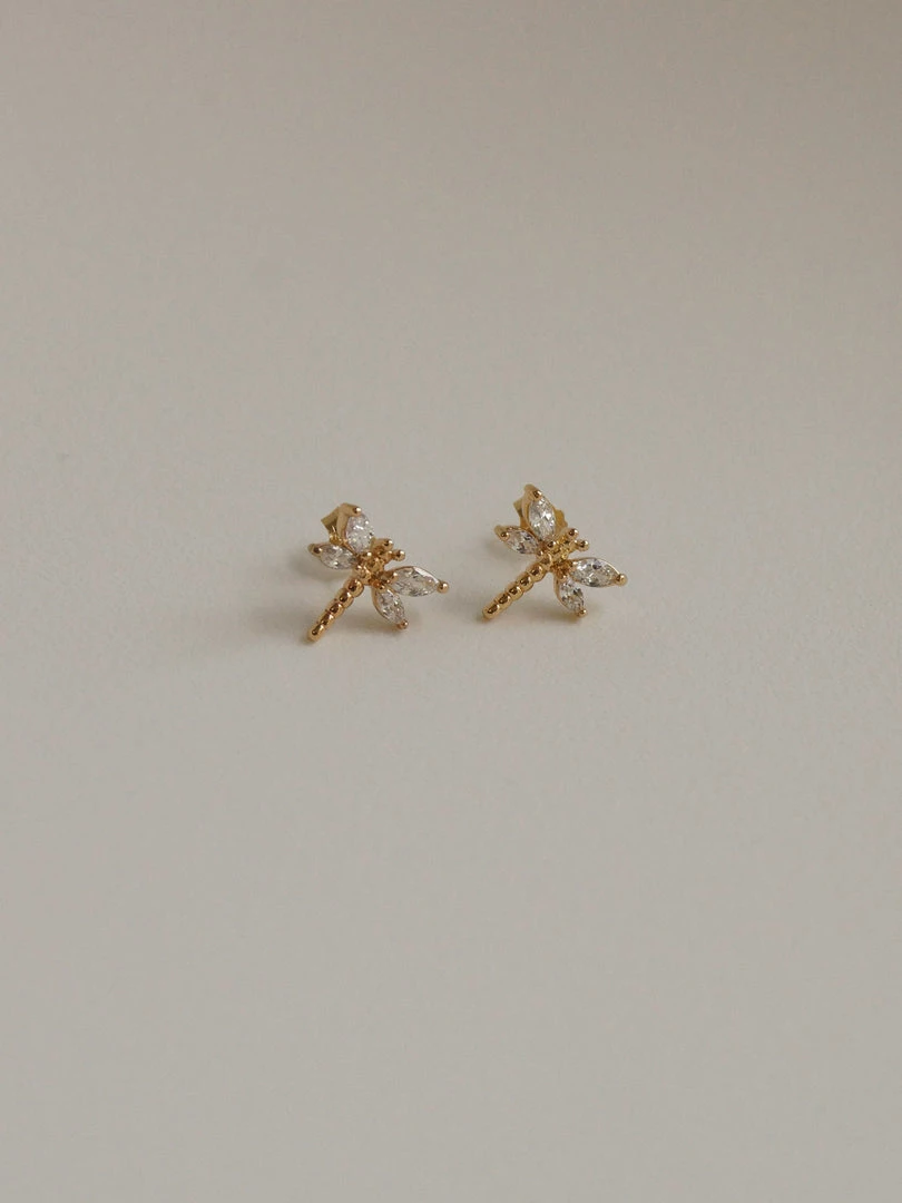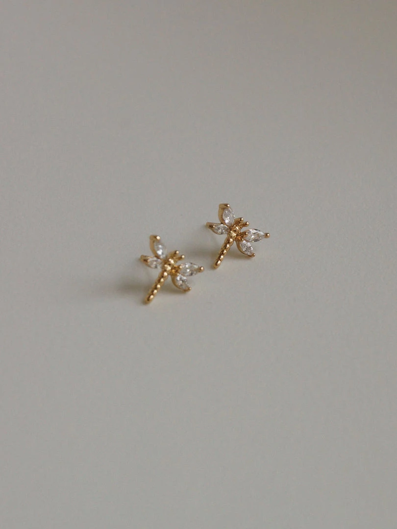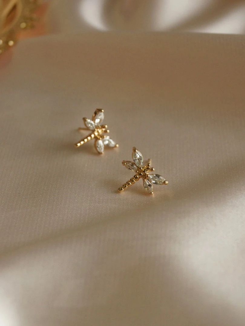 Curiously charming dragonfly earstuds with high quality CZ-encrusted wings.