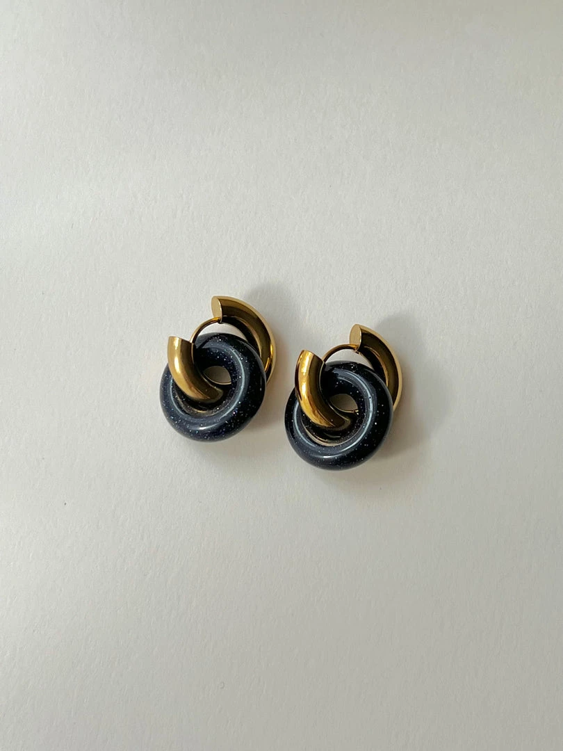 GABI STUDIO / Beautifully chic thick hoops with stone donuts.Ā
