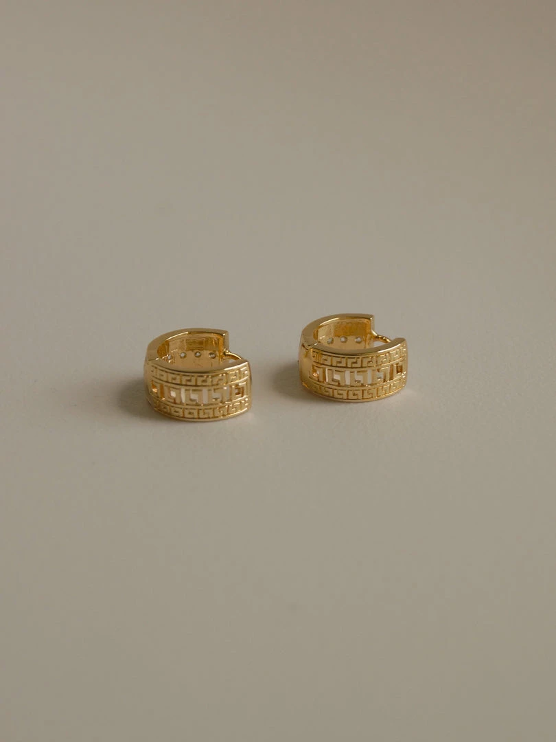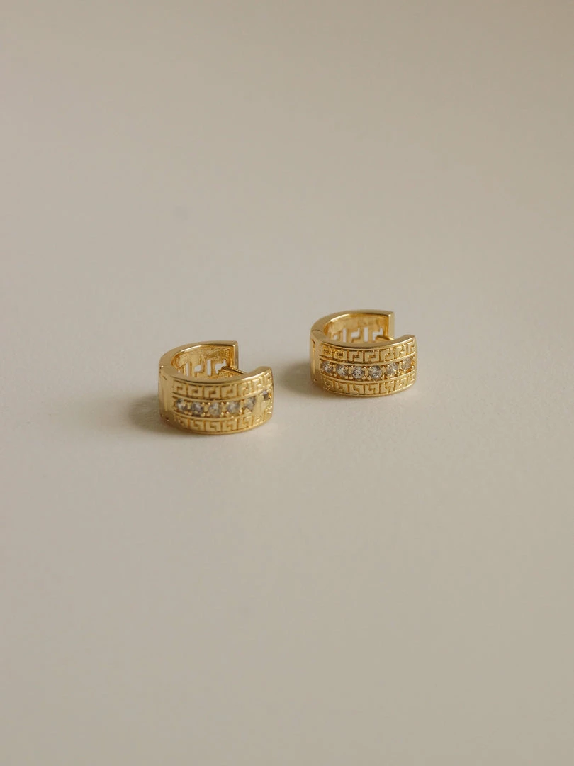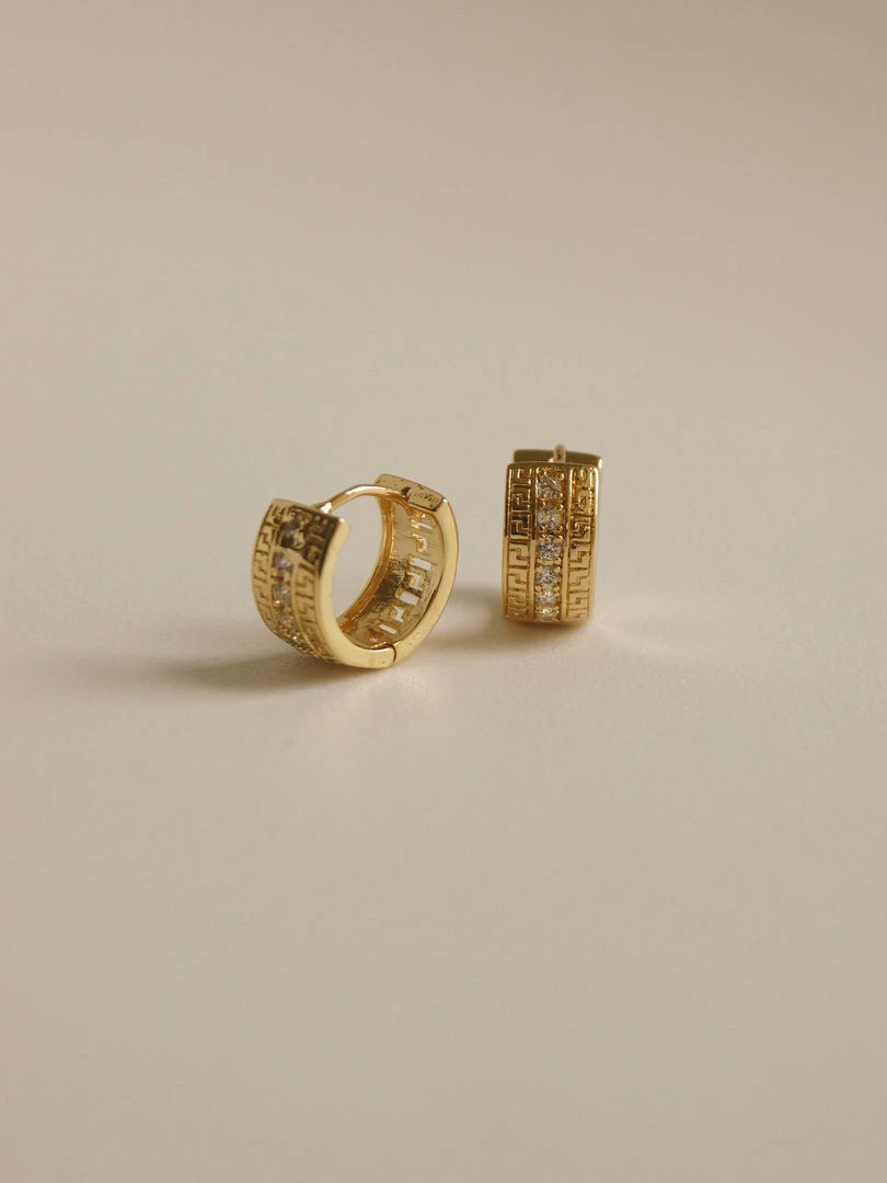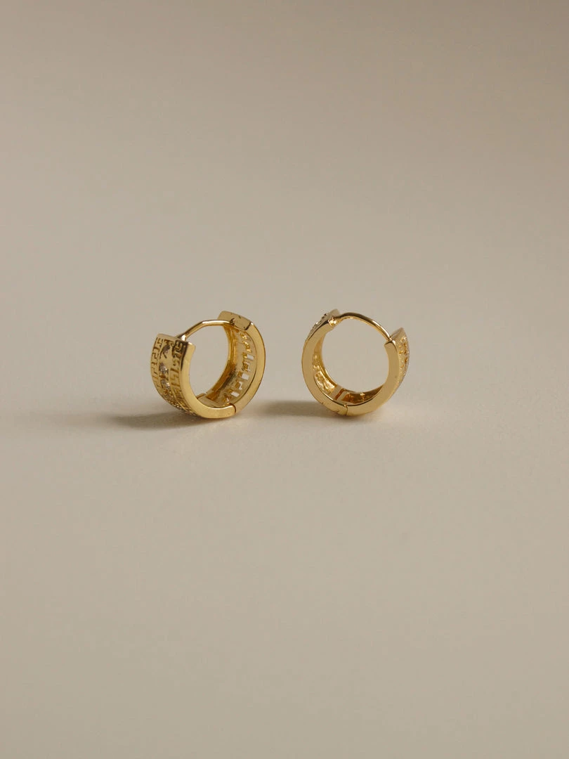 Vintage-inspired, thick huggies with inlaid high-quality CZ; sold as a pair.