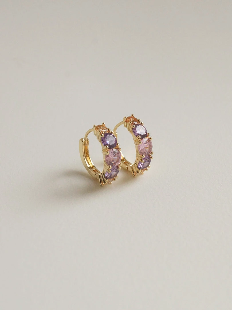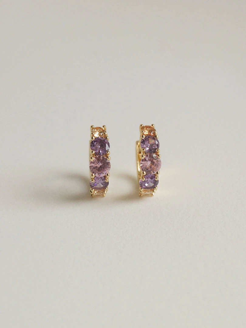 Sweetheart, dainty huggies with purple and pink cz stones.
