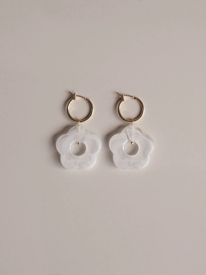 GABI STUDIO / DaintyĀ 18K gold-plated hoops with marbled resin flowers.