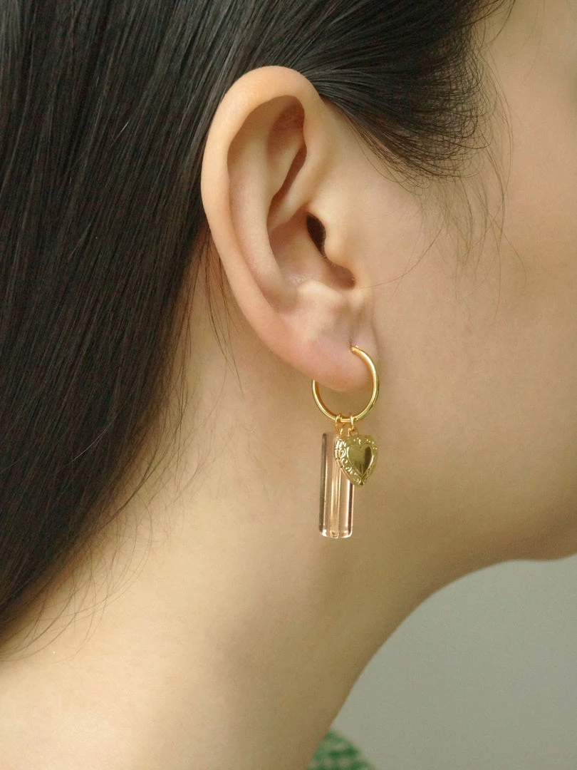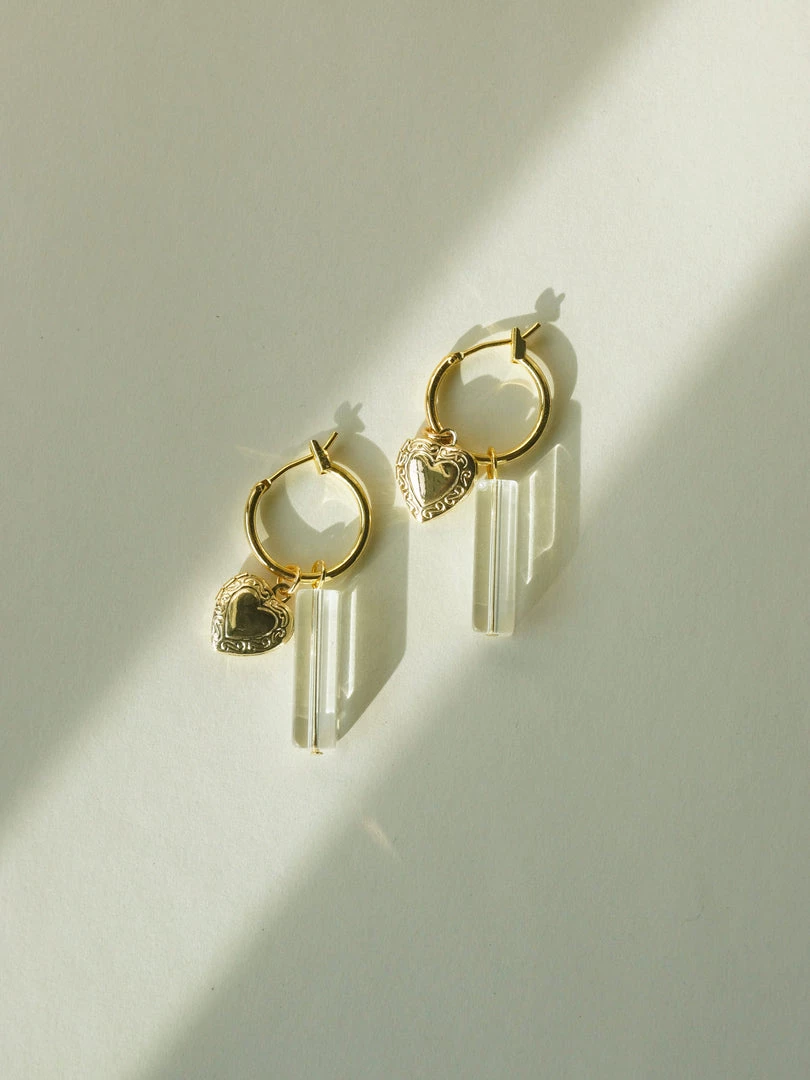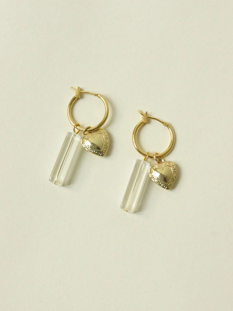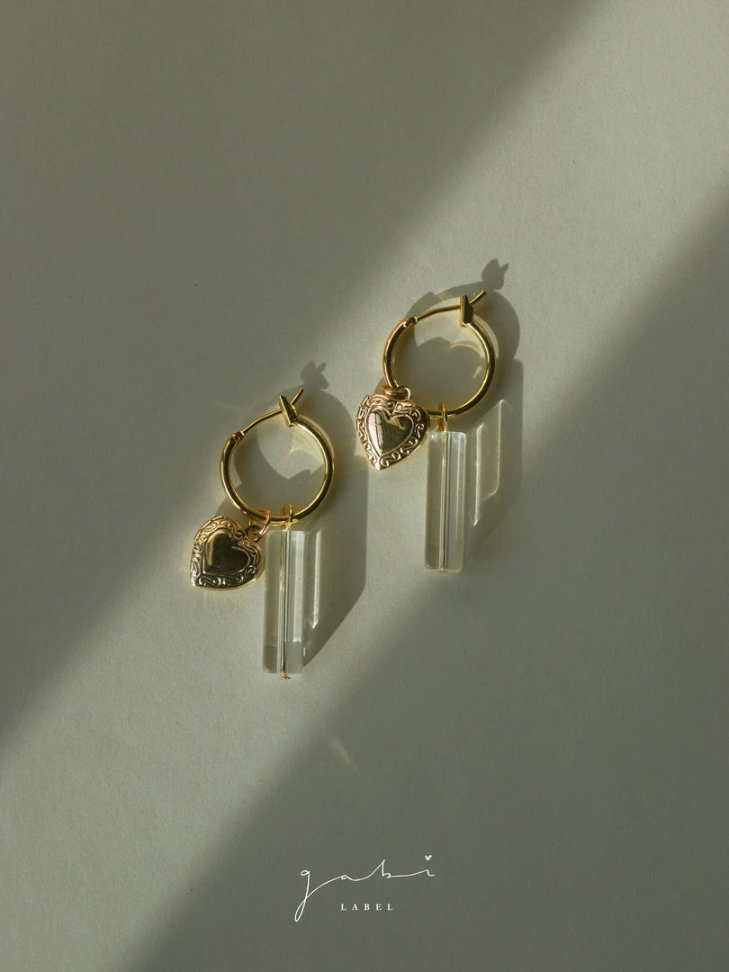 GABI STUDIO /Ā DaintyĀ heart-shaped locket hoop earrings with glass beads. Fully functioning petite lockets; removable charms allow flexibility with customising earrings.