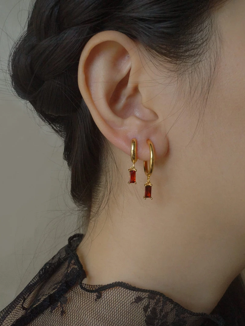 GABI STUDIO / ChicĀ gold-dipped huggies with cubic zirconia in solidĀ colours.
