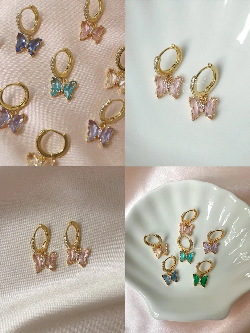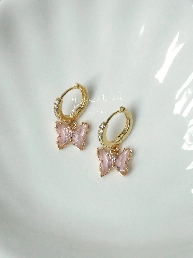 Gabi The Label EARRINGS Petite Butterfly Huggies – Pink *14K Gold-plated