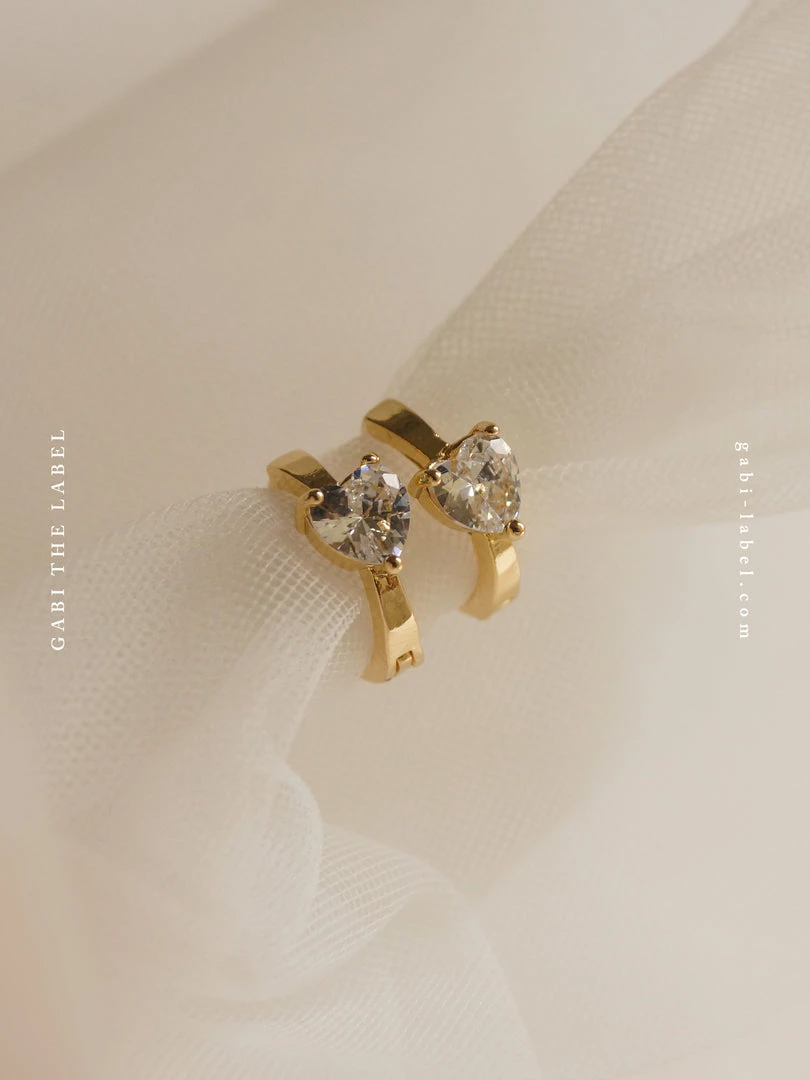 Cute huggies with high quality heart CZ gemstones; sold as a pair and great for layering.
