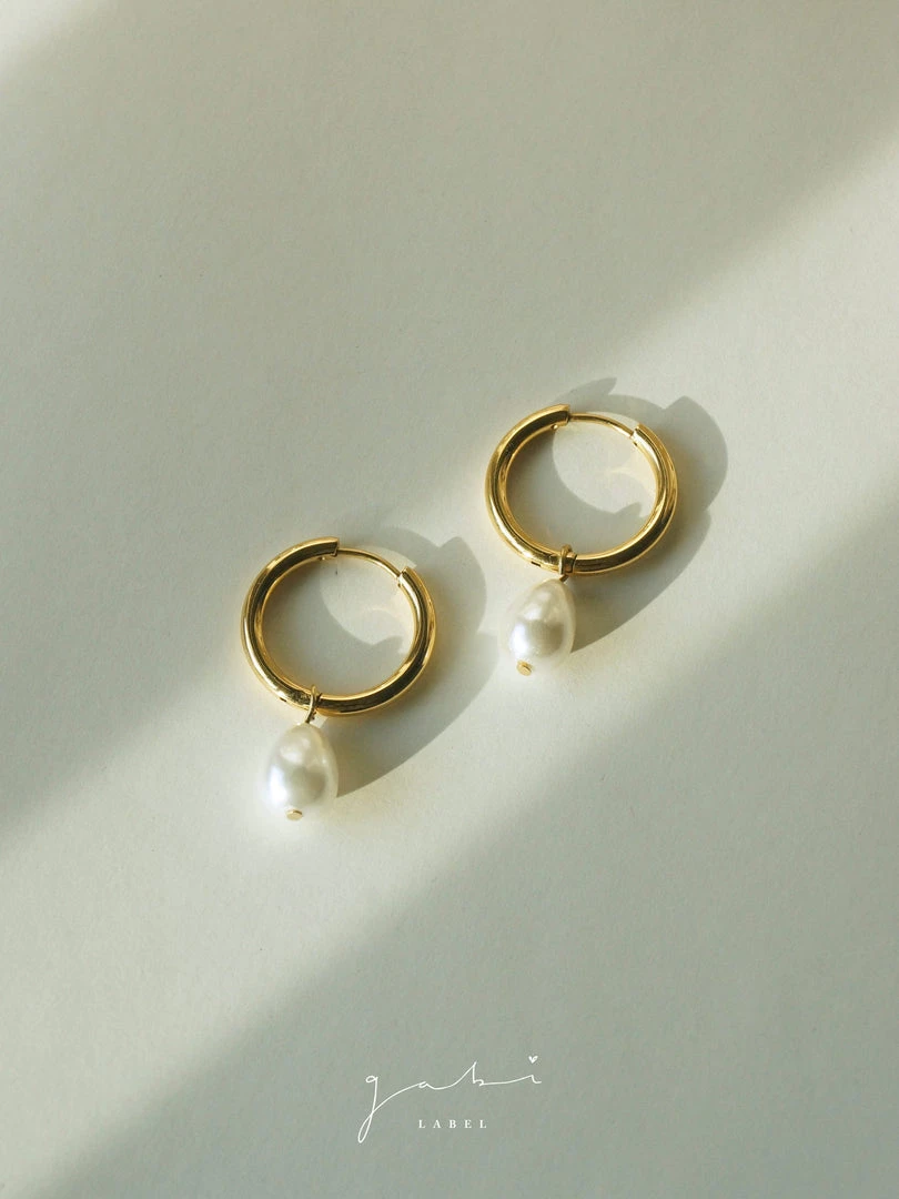 GABI STUDIO /Ā Elegant pearl (made with natural shell) earringsĀ with stainless steel hoops.