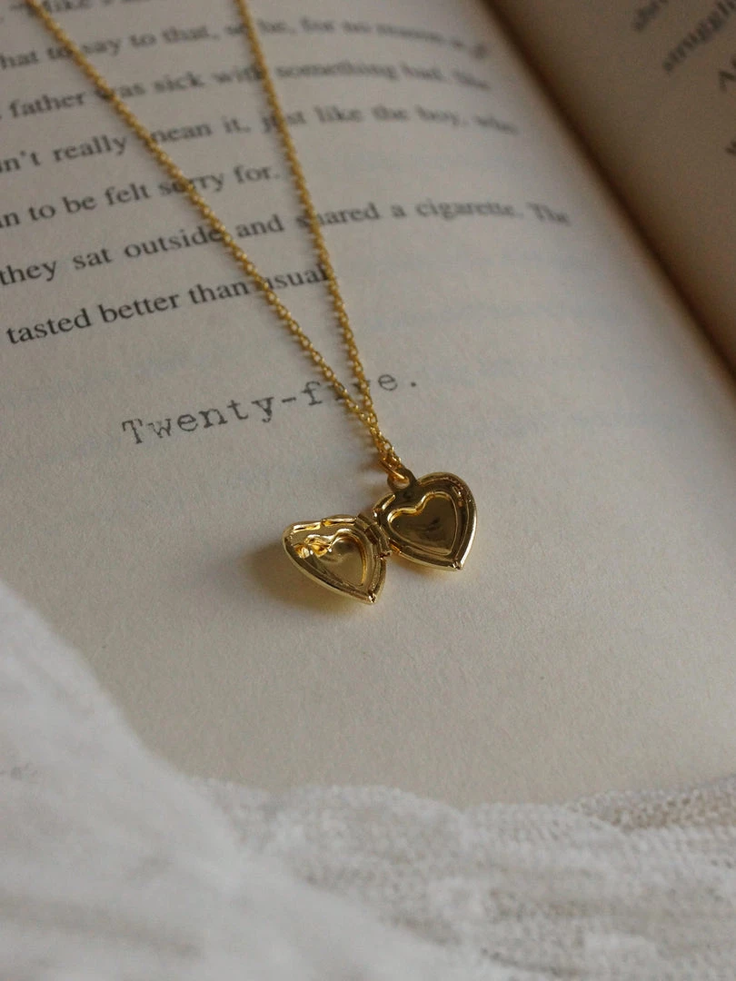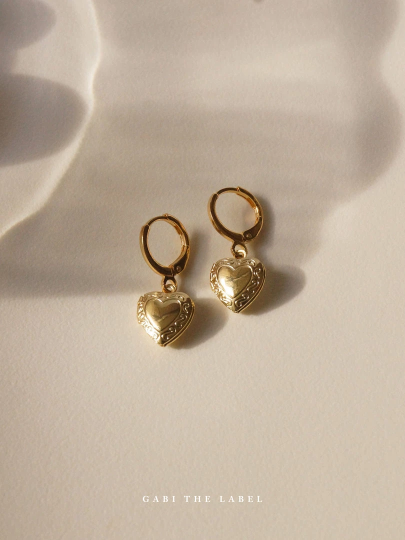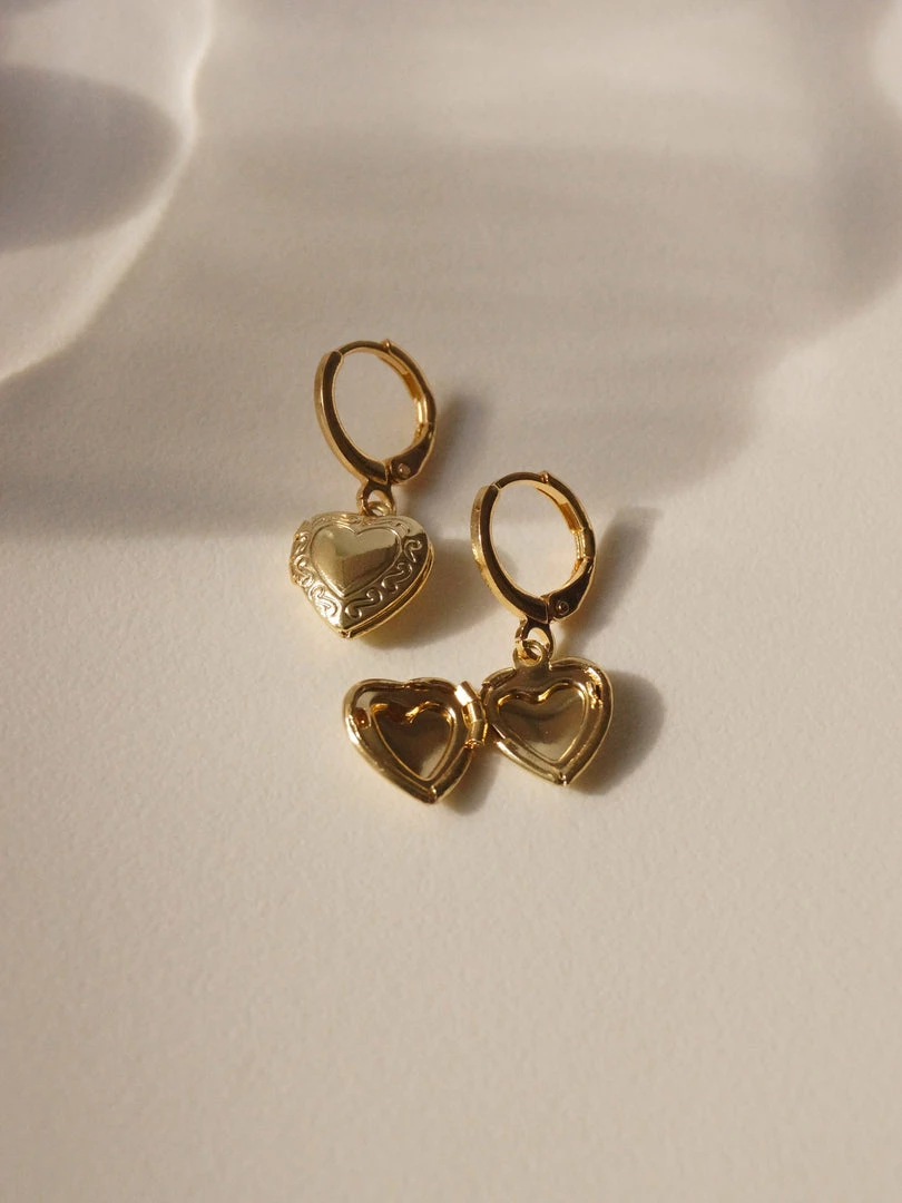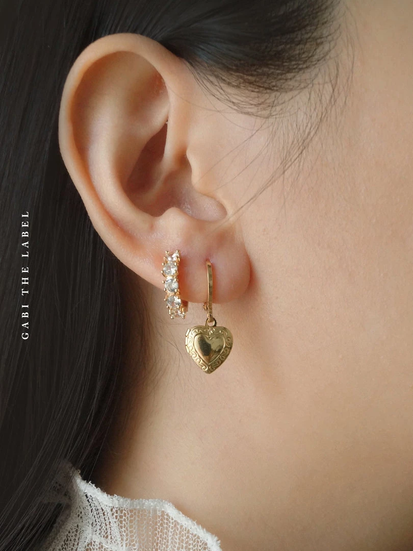 Set of Necklace + Huggies (pair) / A charming matching locket set, all wrapped up in a cute little pouch. Perfect for gifting!