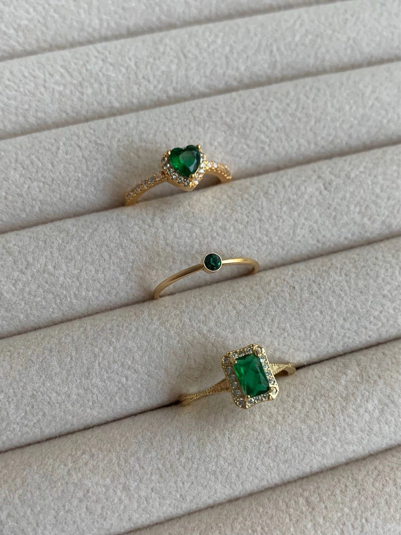 An elegant gold ring with a jewel-encrusted central gemstone.