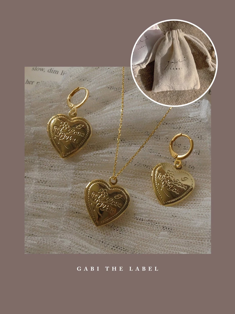 Set of Necklace + Huggies (pair) / A charming matching locket set, all wrapped up in a cute little pouch. Perfect for gifting!