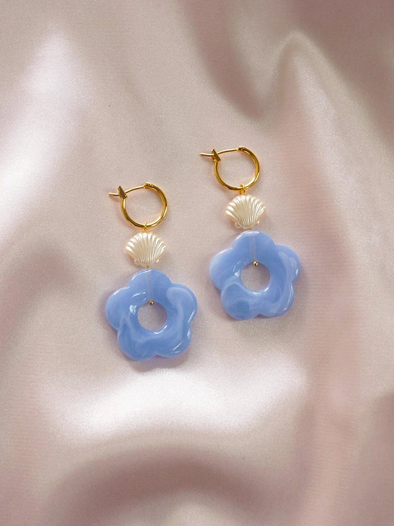 GABI STUDIO /Ā Charming baby blue floral earrings with marbled resin flowers.