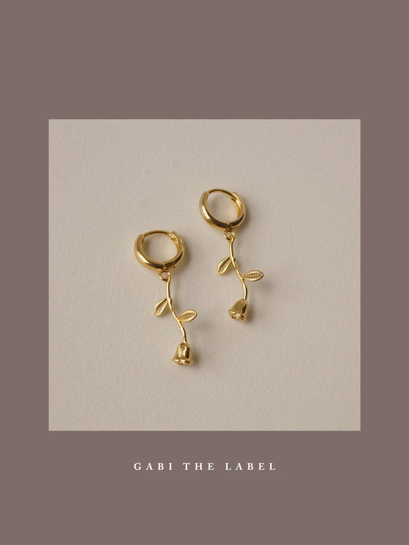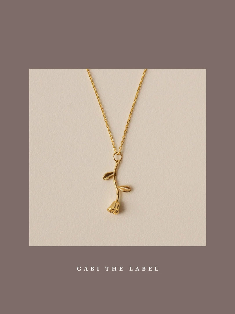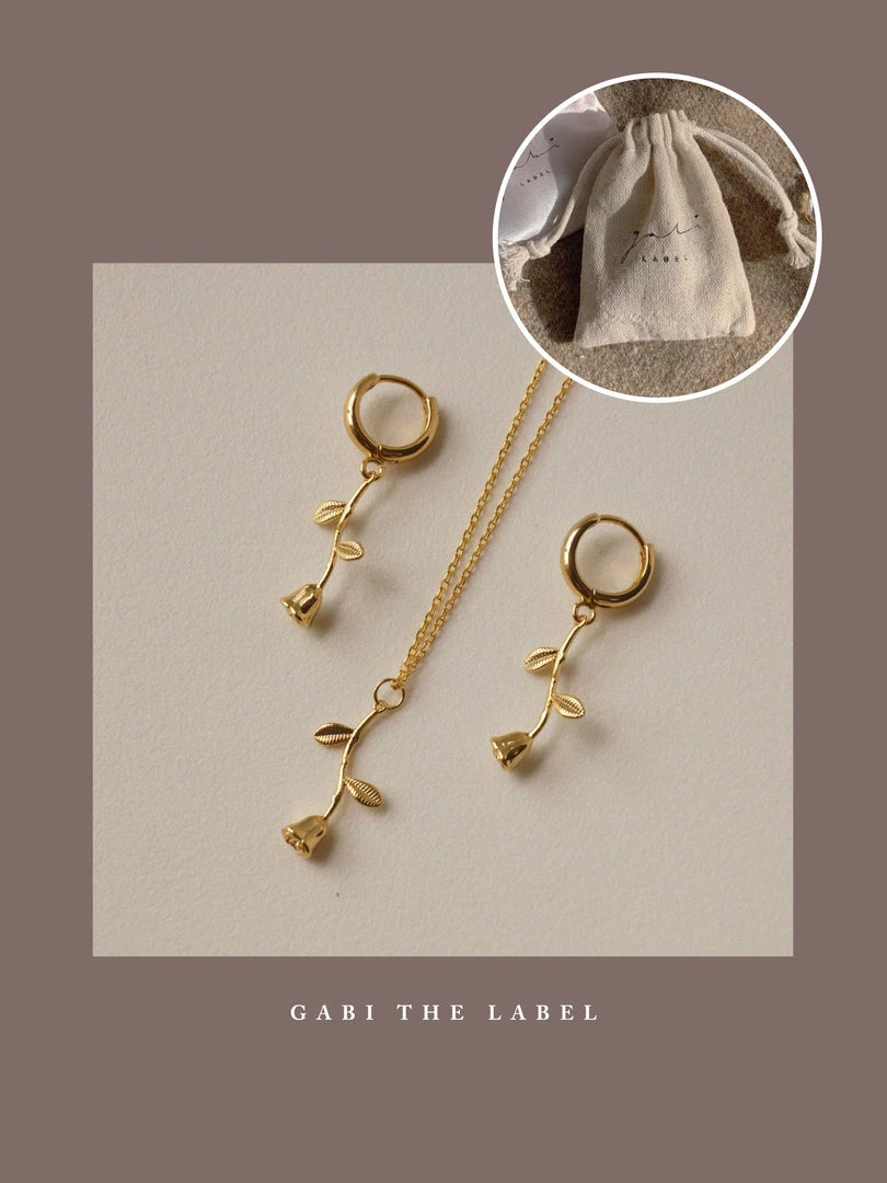Set of Necklace + Huggies (pair) / A romantic matching rose set, all wrapped up in a cute little pouch. Perfect for gifting!