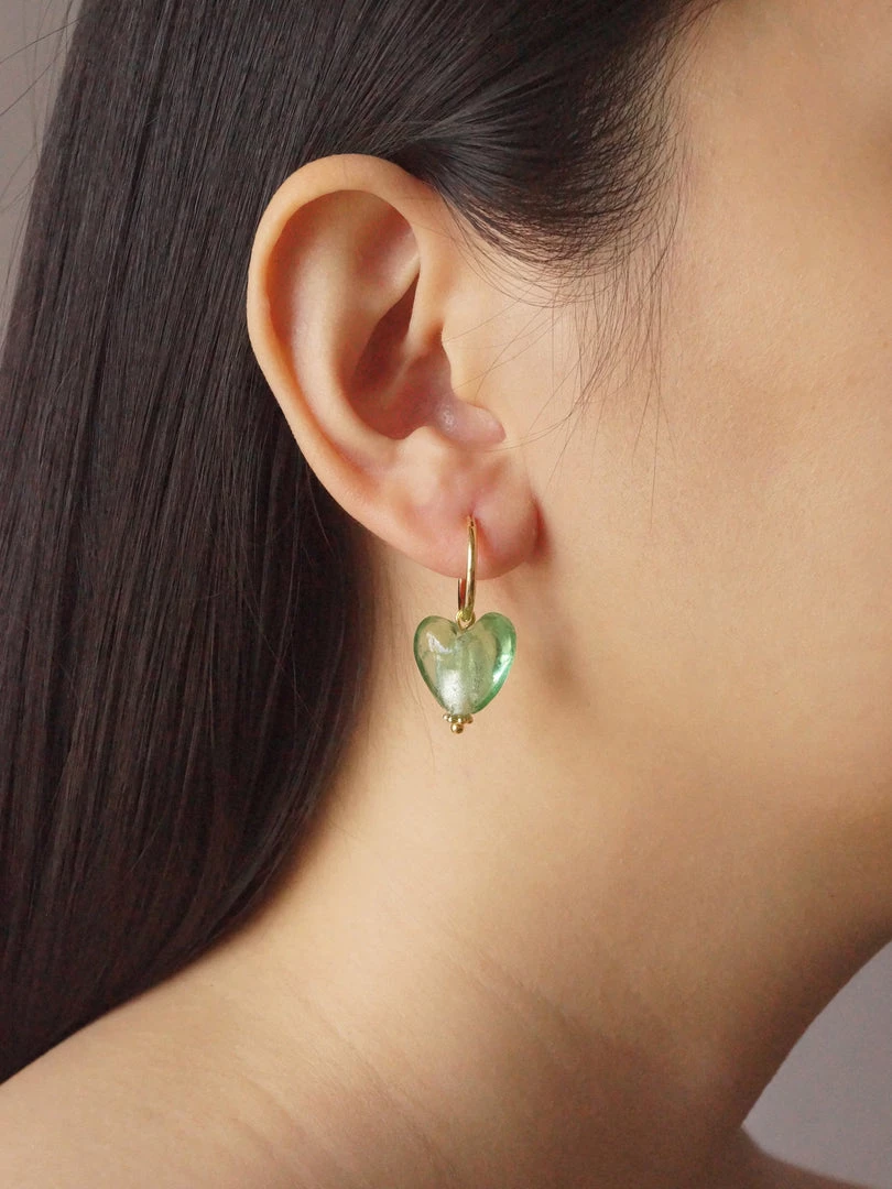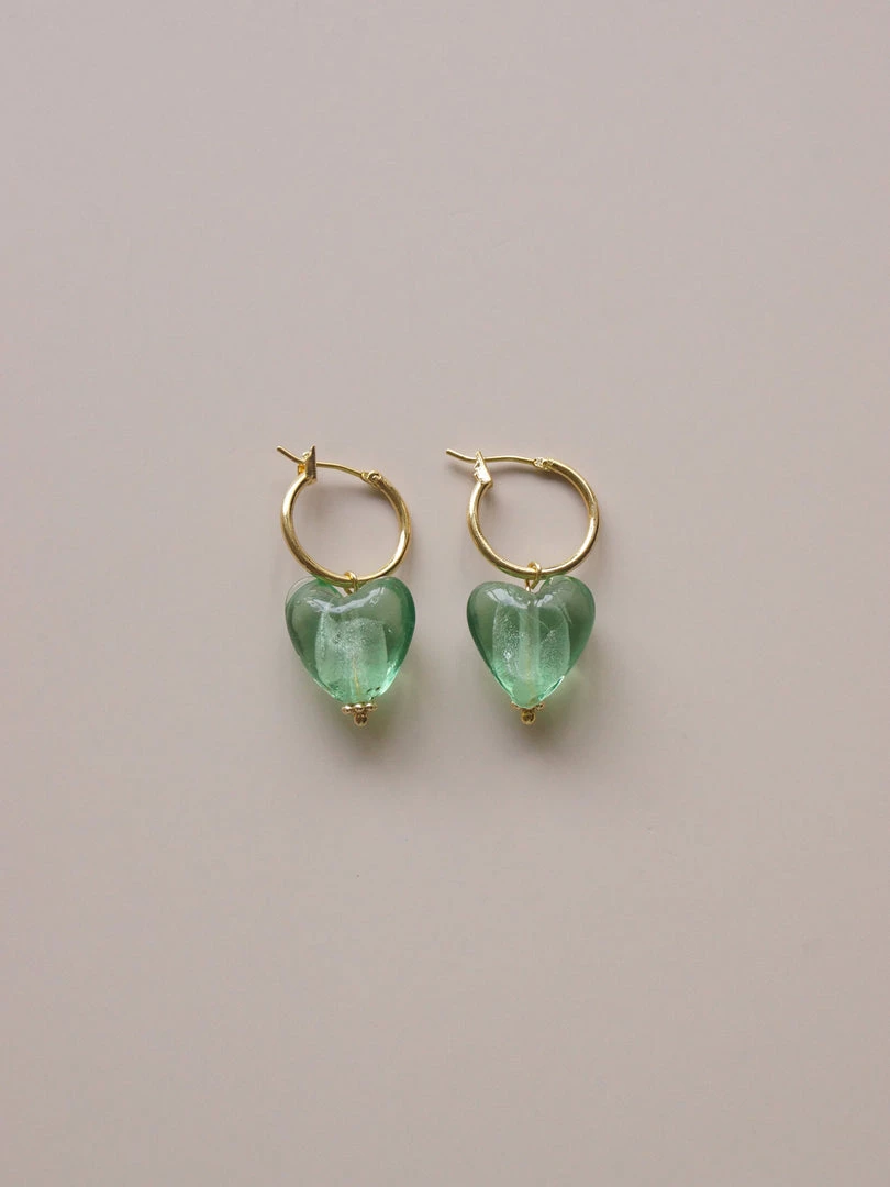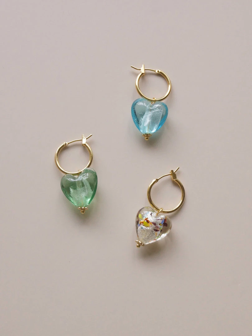 GABI STUDIO / Refined 18K gold-plated hoops with heart glass beads.