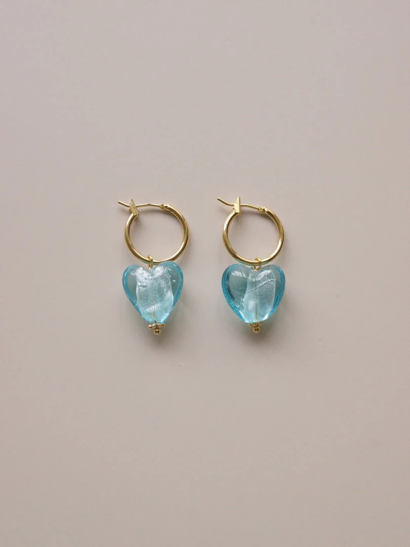 GABI STUDIO /Ā Refined 18K gold-plated hoops with heart glass beads.