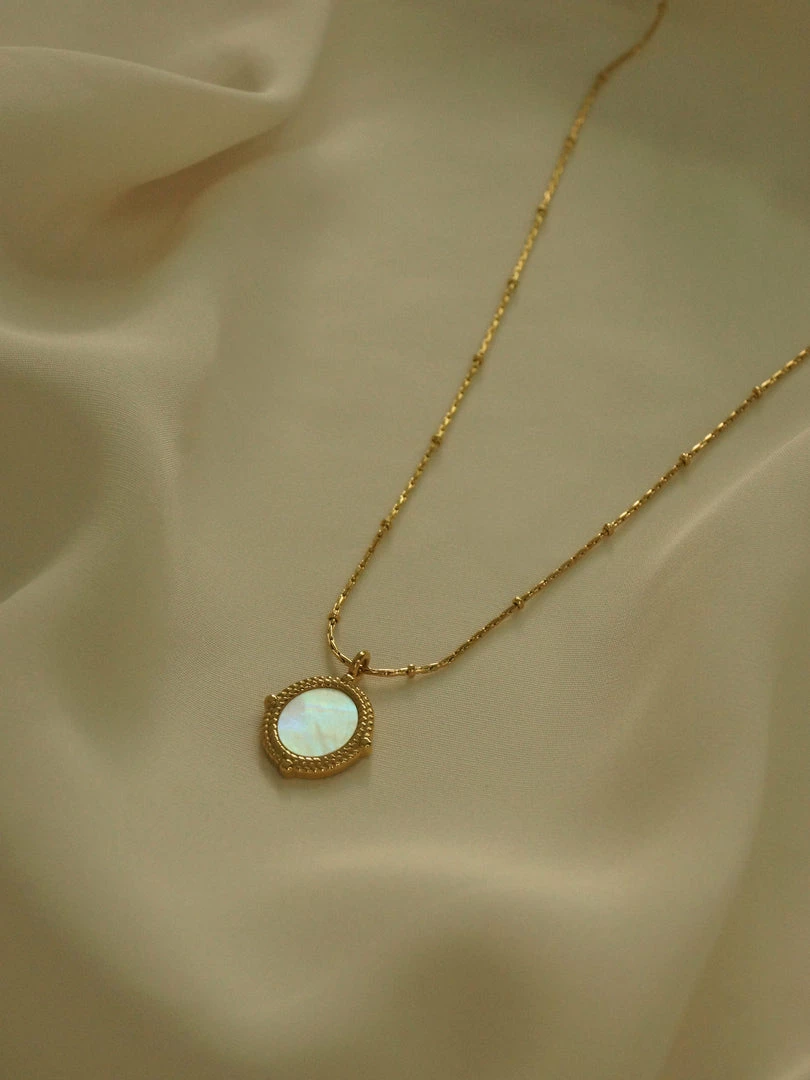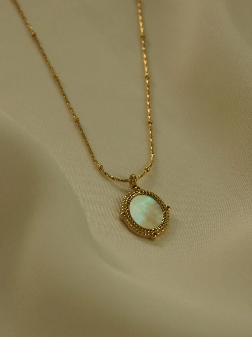 - Gold chain: 18k Gold plating, stainless steel, shell