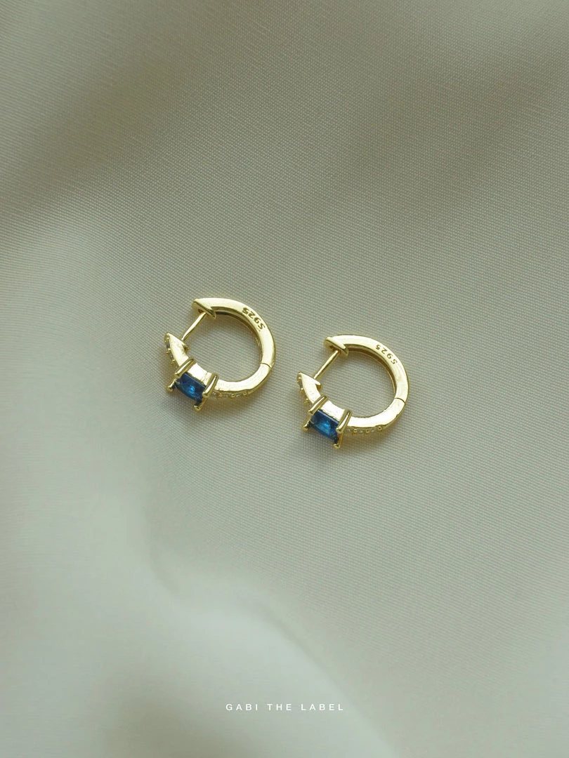 Refined, lustrous huggie-hoops with inlaid gemstones.