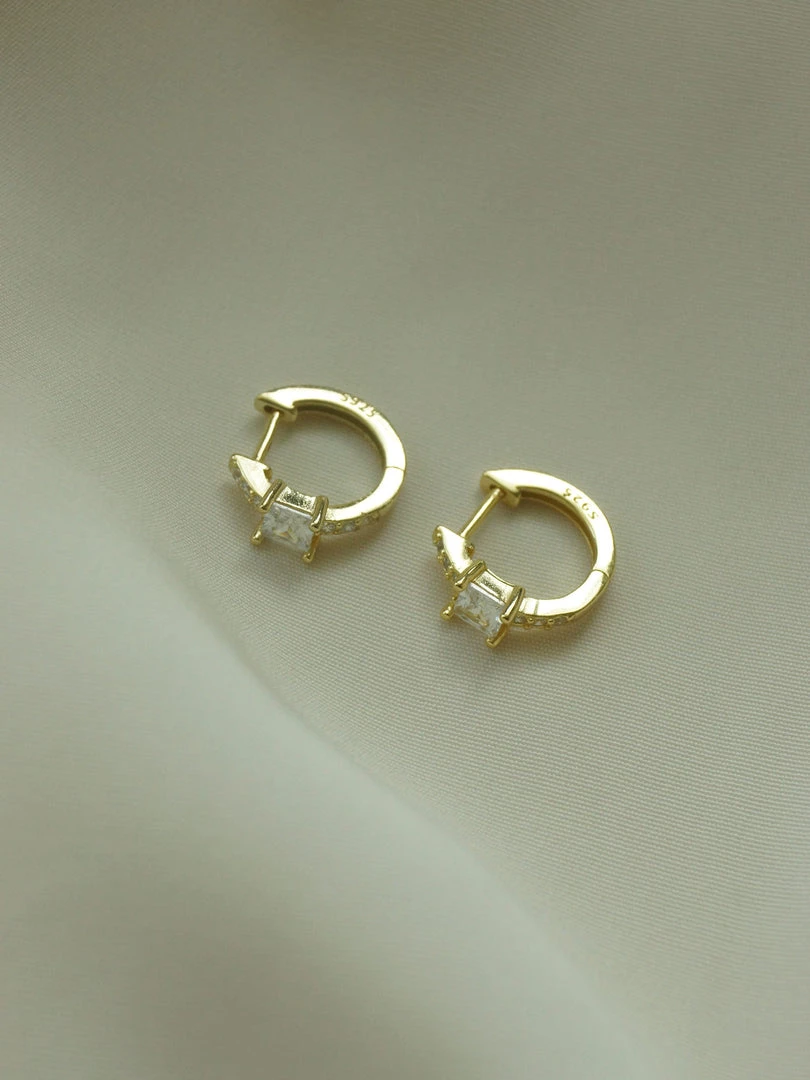 Refined, lustrous huggie-hoops with inlaid gemstones.