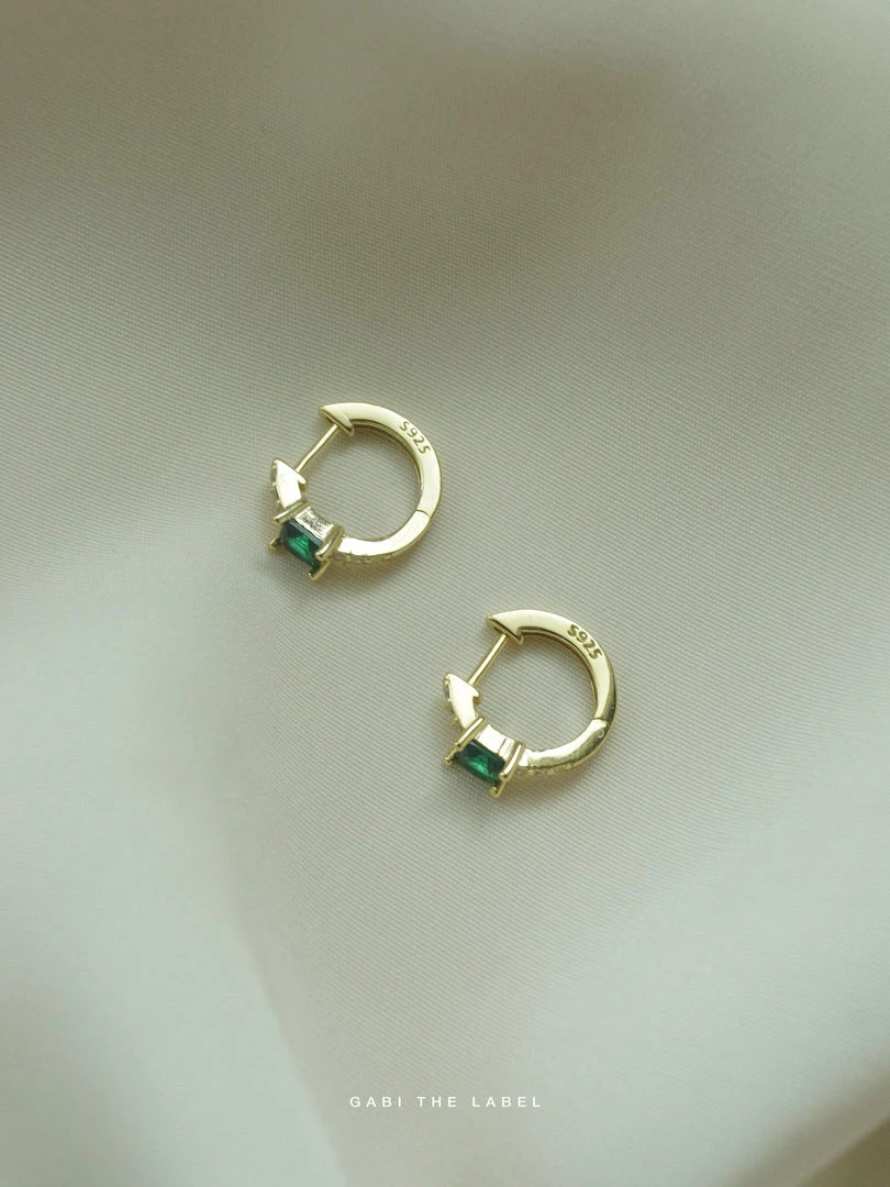 Refined, lustrous huggie-hoops with inlaid gemstones.