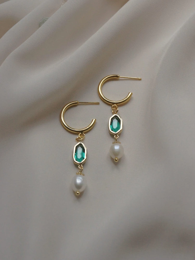 - 18K Gold plated brass with S925 earposts, freshwater pearls, cubic zirconia