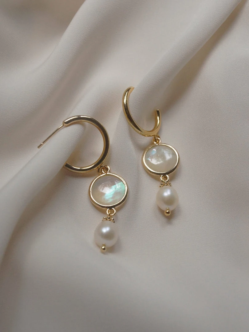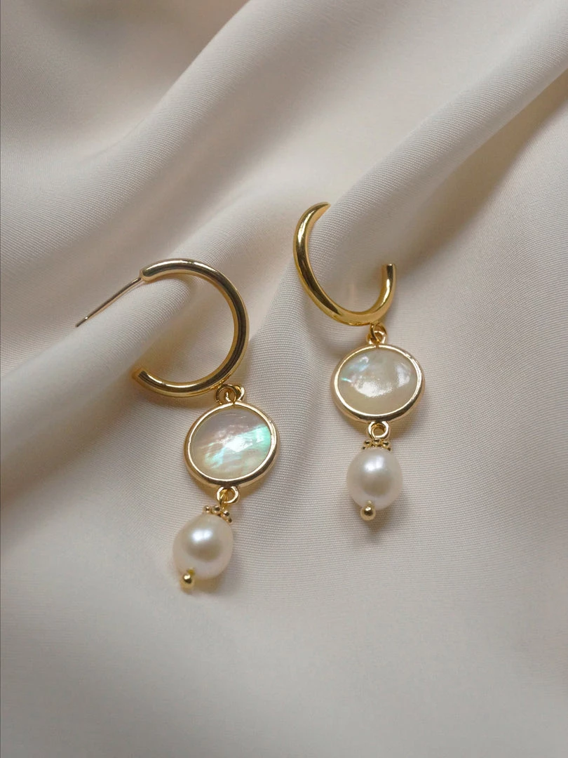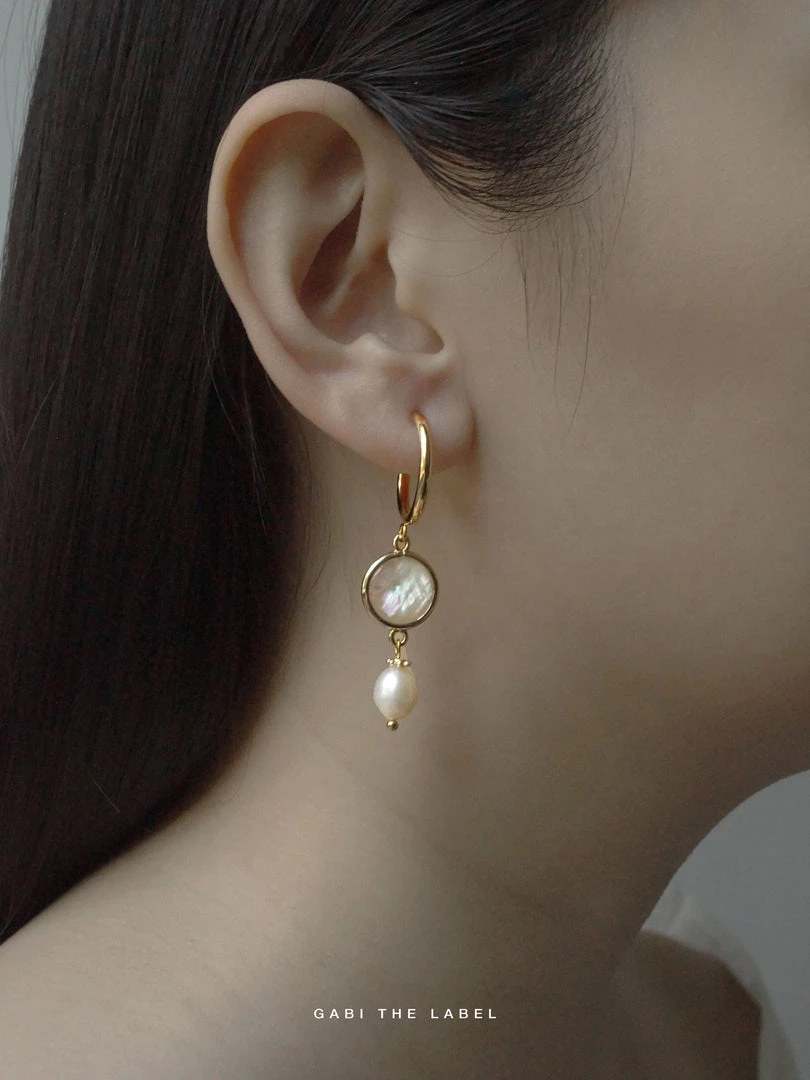 - 18K Gold plated brass with S925 earposts, freshwater pearls, shell