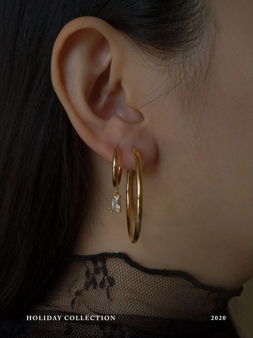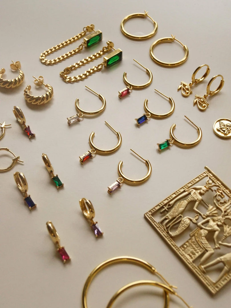 GABI STUDIO / ElegantĀ gold-dippedĀ hoopsĀ with cubic zirconia in solidĀ colours.