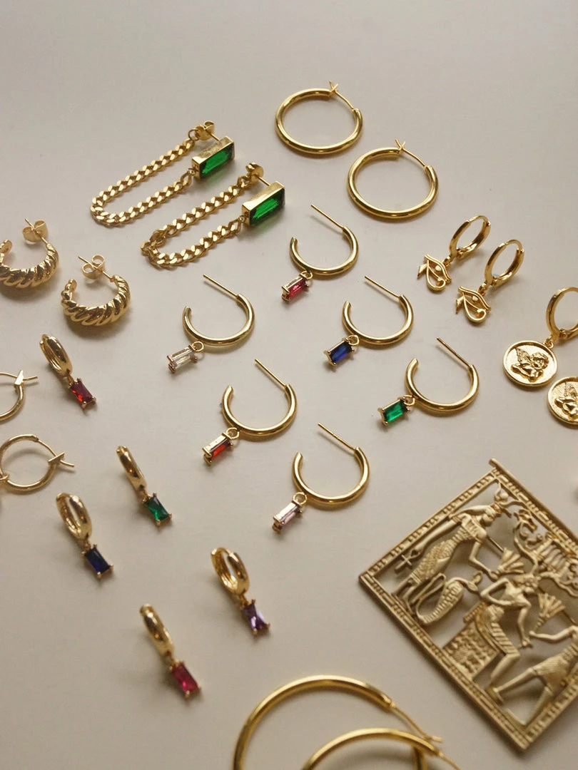 GABI STUDIO / ElegantĀ gold-dippedĀ hoopsĀ with cubic zirconia in solidĀ colours.