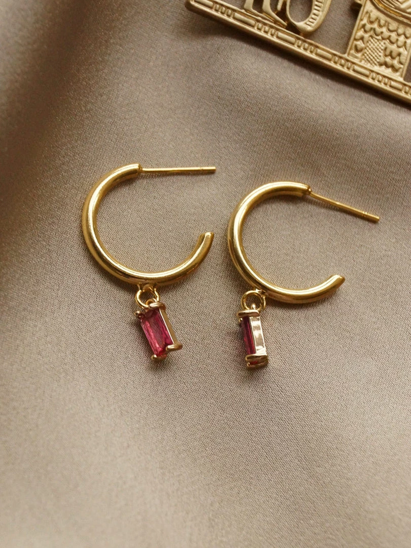 GABI STUDIO / ElegantĀ gold-dippedĀ hoopsĀ with cubic zirconia in solidĀ colours.