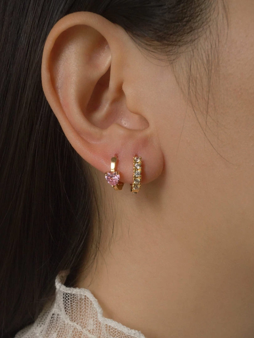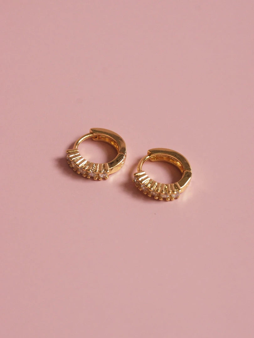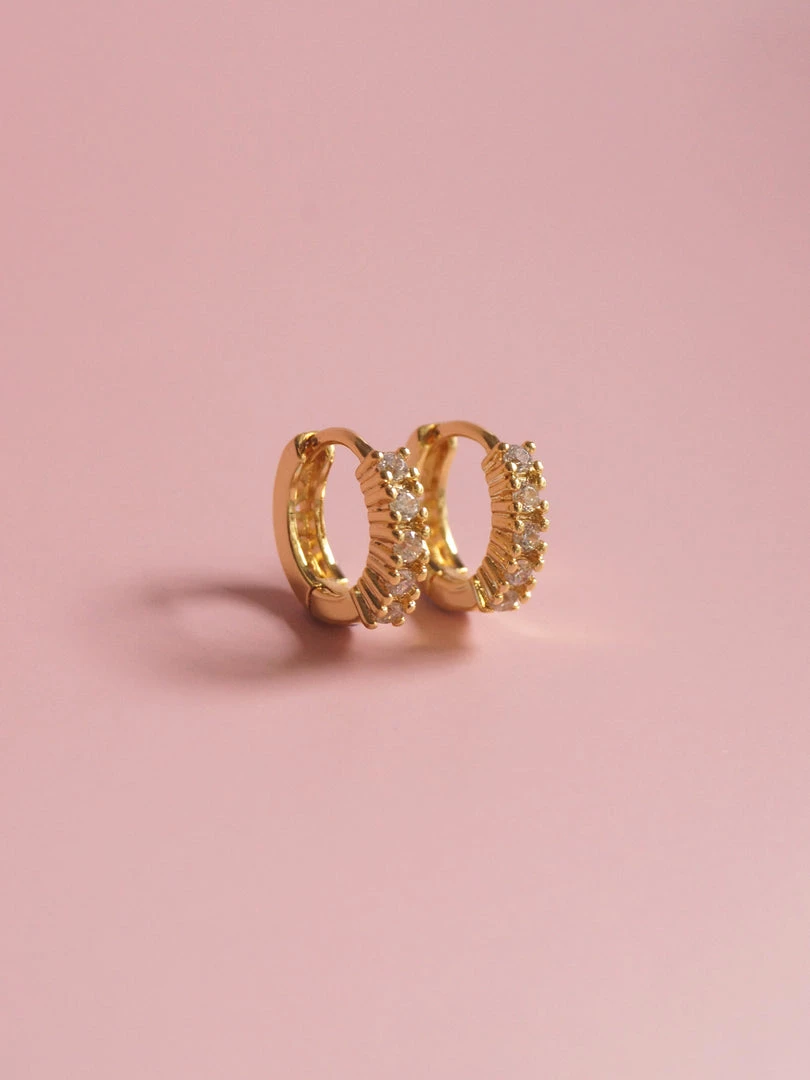 CharmingĀ gold huggies with tiny inlaid cubic zirconia.