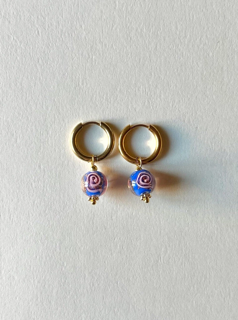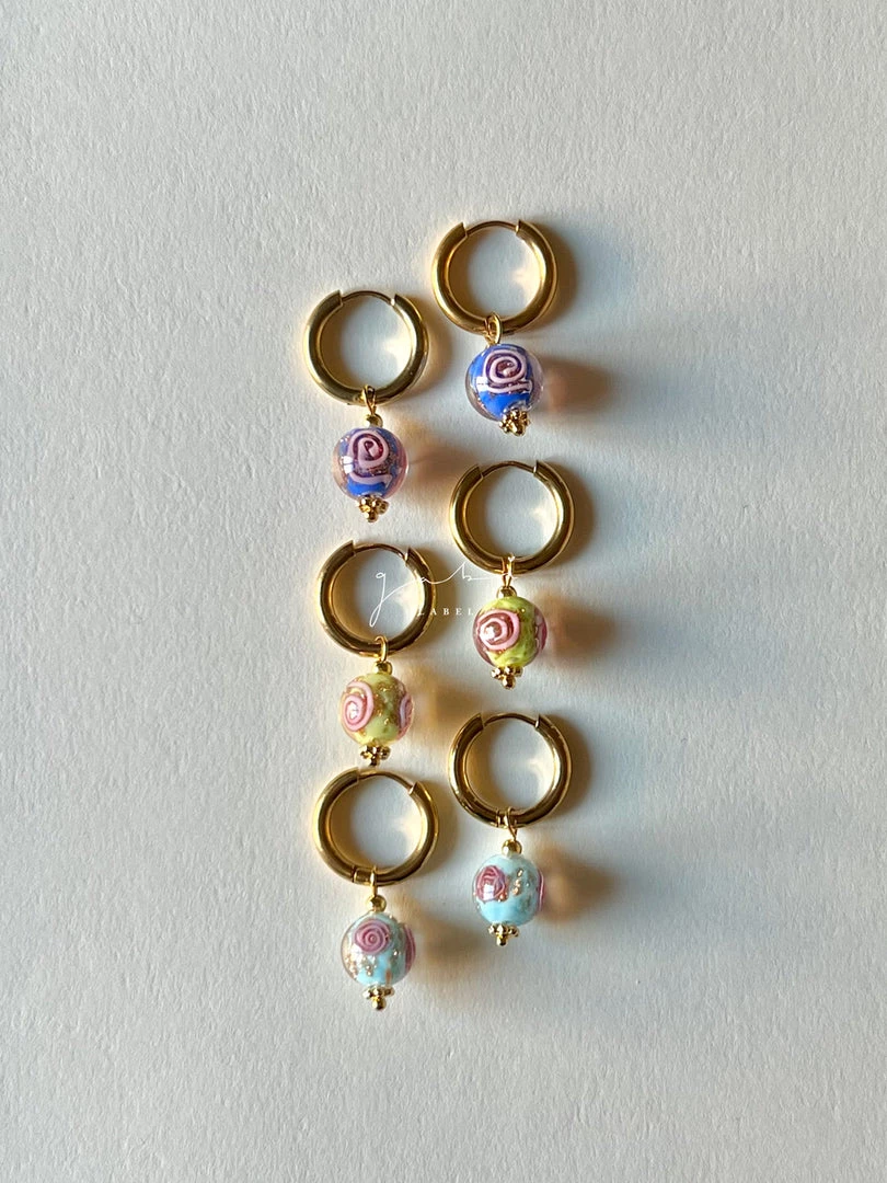 GABI STUDIO / Charming earrings with colourful glass beads on stainless steel hoops.