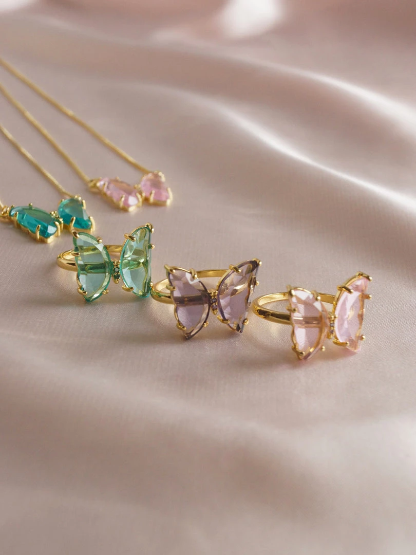 Embrace your metamorphosis with our loveliest butterfly glass ring. Carry this symbolic butterfly with you and may it bring you extra luck in everything you do 🙂