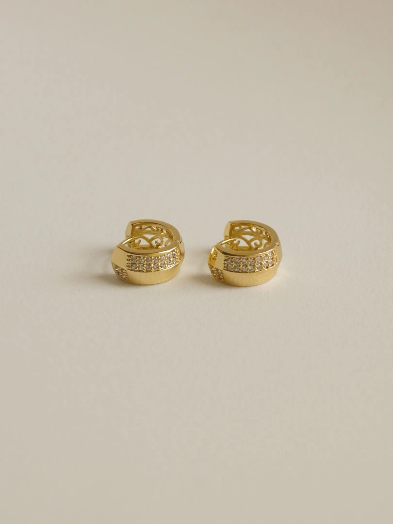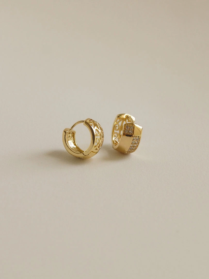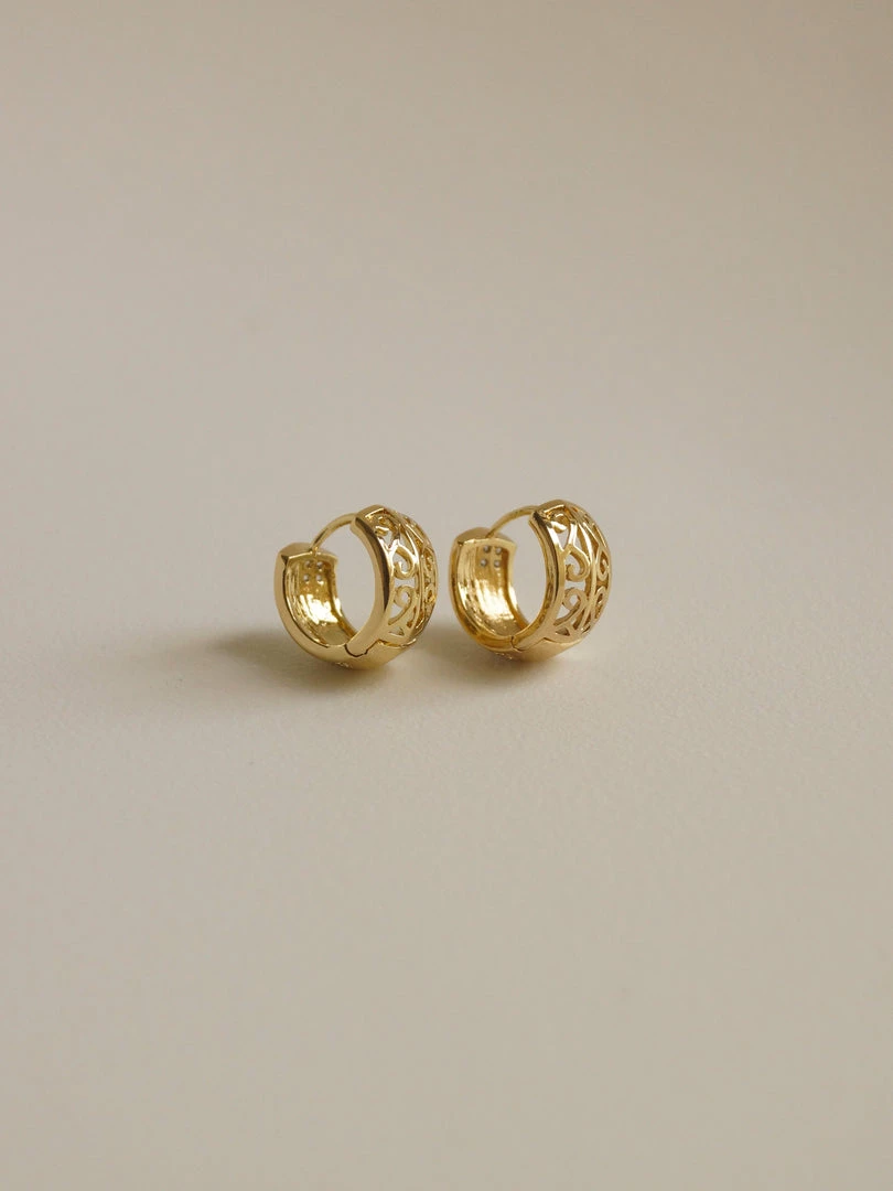 Vintage-inspired huggies with intricate detailing and inlaidĀ high-grade CZ.