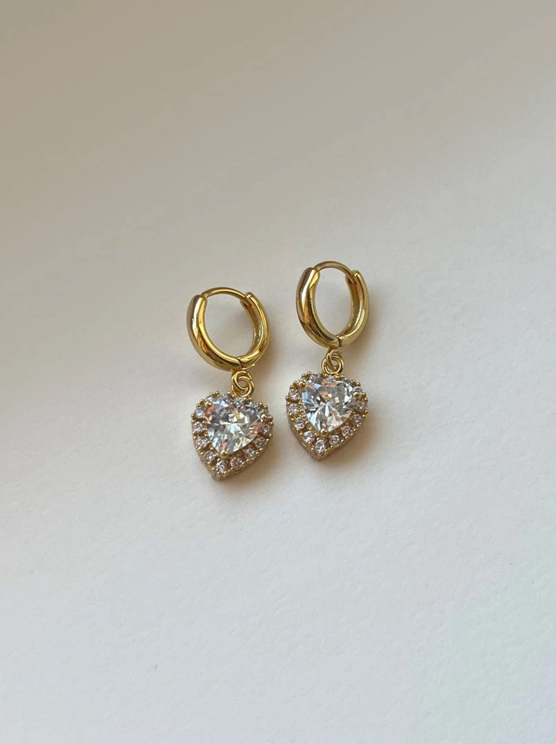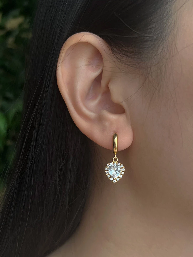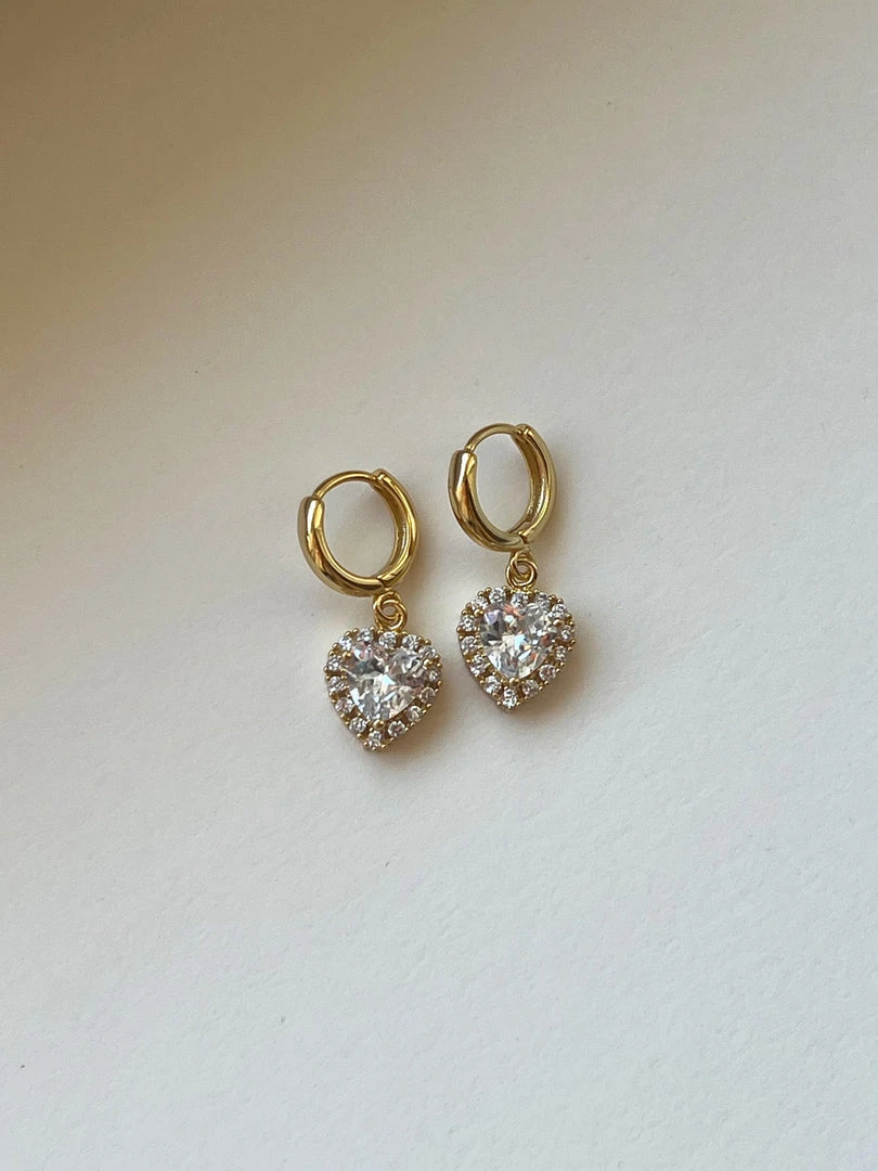 GABI STUDIO /Â Beautiful sparkle cubic zirconia heart pendant huggies.