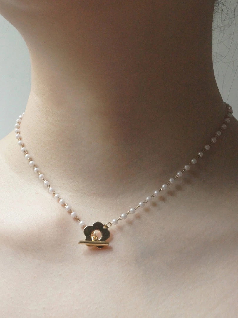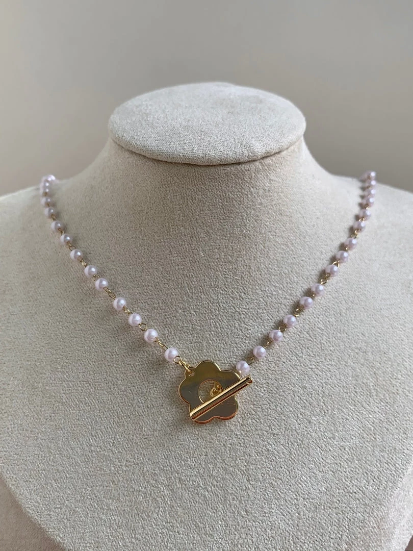Delicate faux pearl choker with a lovely flower-shaped lock.