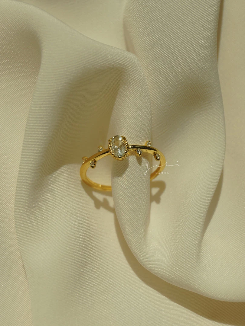 Intricate, lustrous gold ring with strikingĀ clear cubic zirconia.