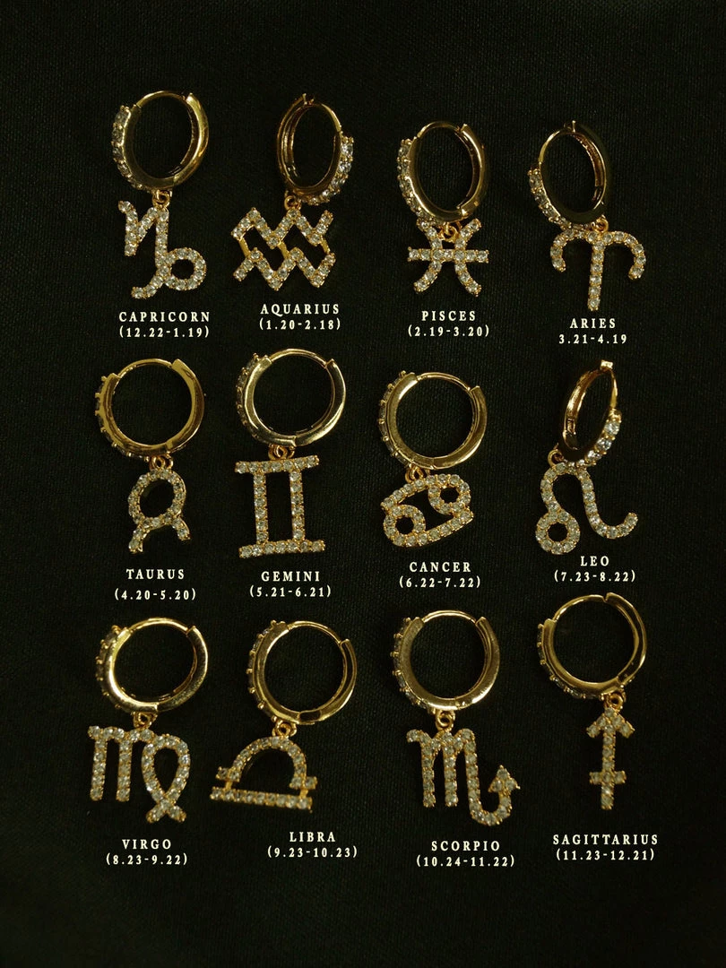 Pavé Version / Sparkle with the magic of your star sign. Sold in pairs and available in all 12 horoscopes (select your star sign). Great for layering!