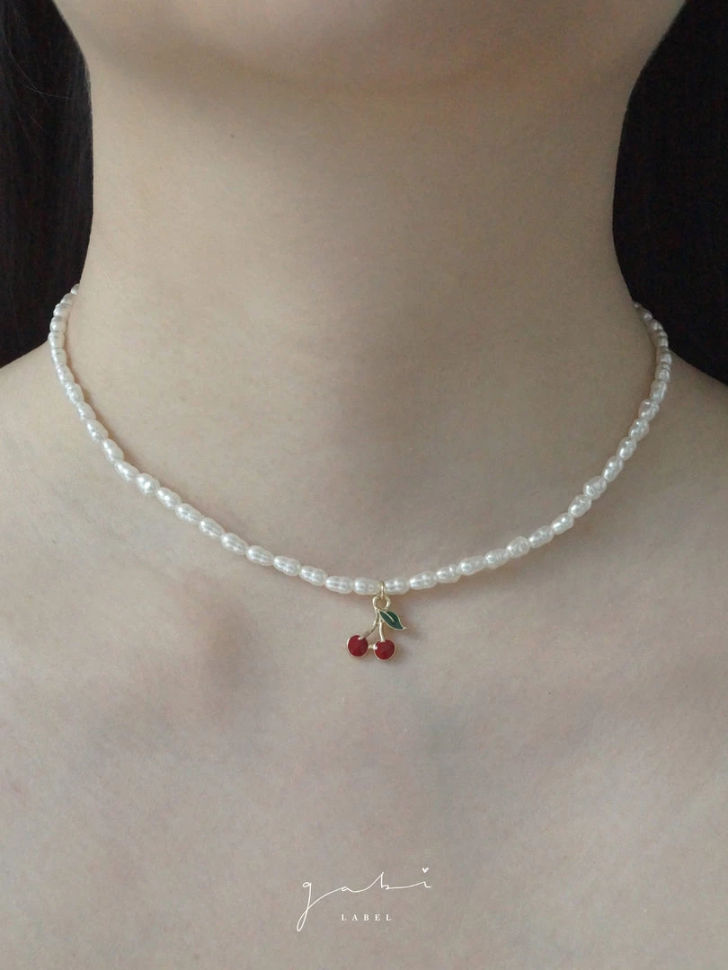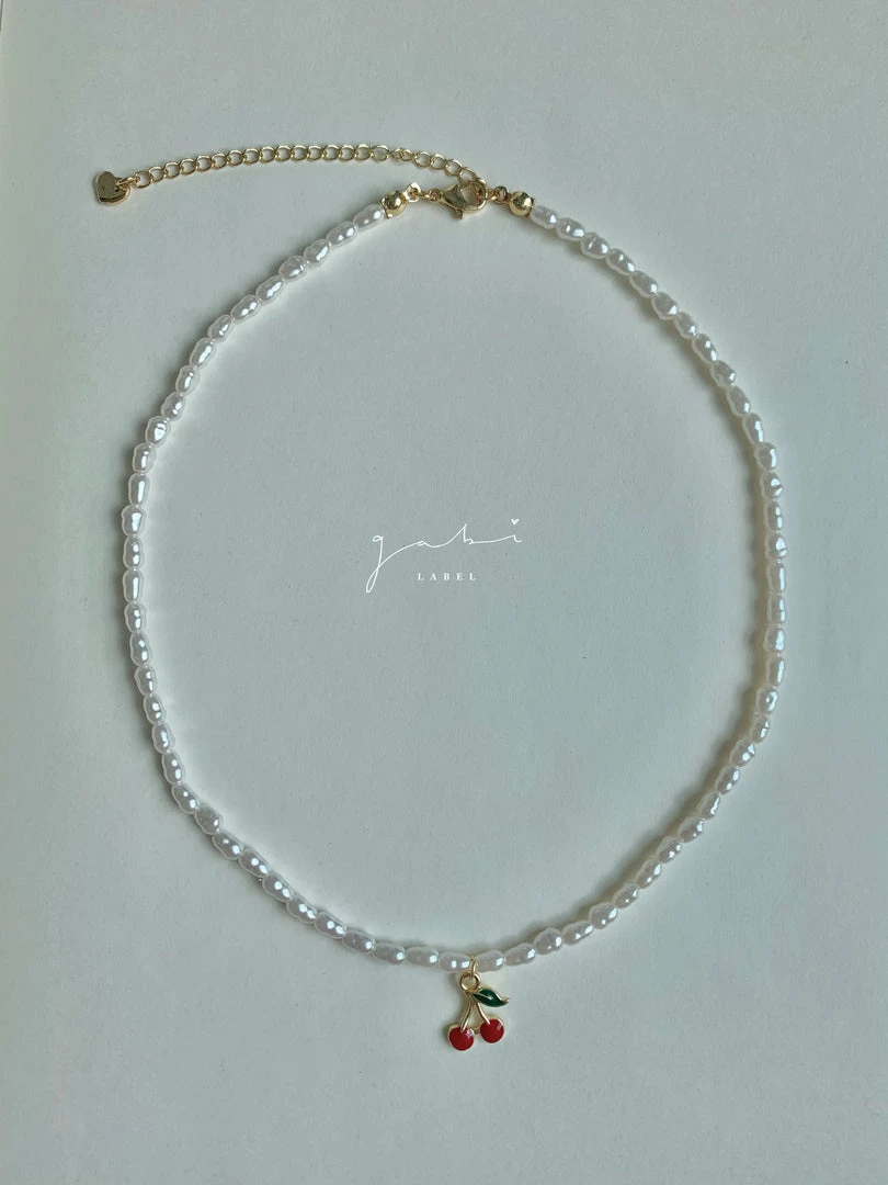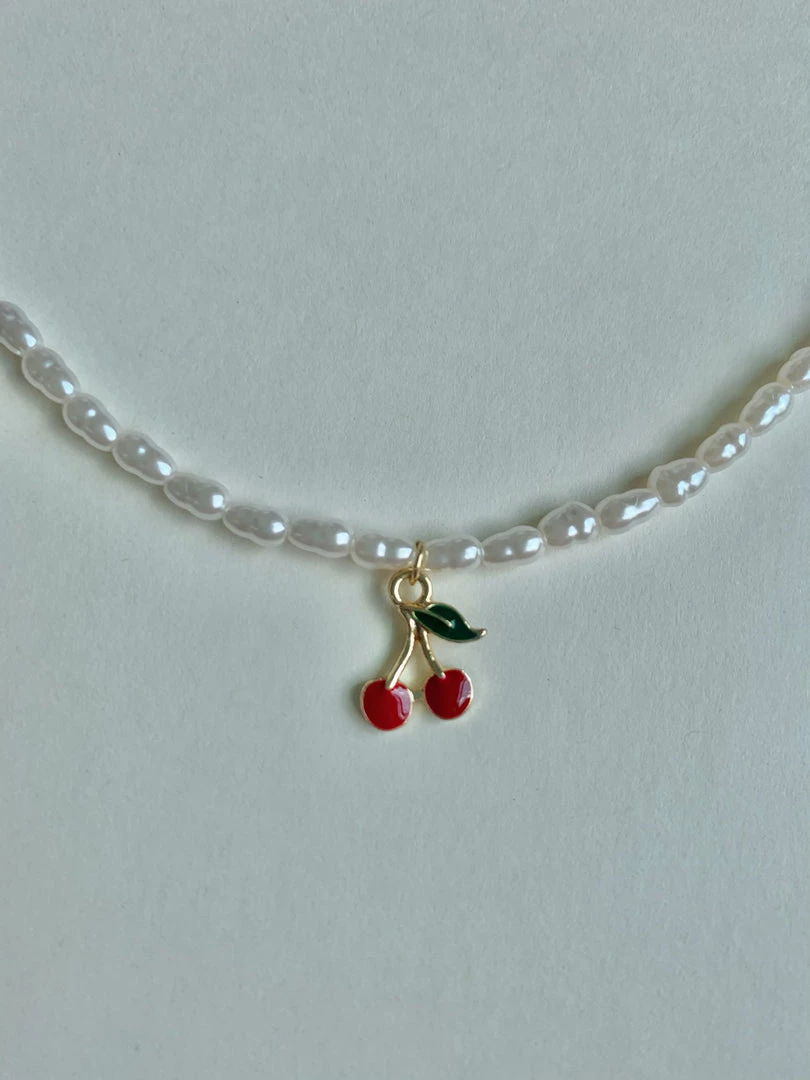 Charming and delicate pearl necklace with a little cherry pendant.