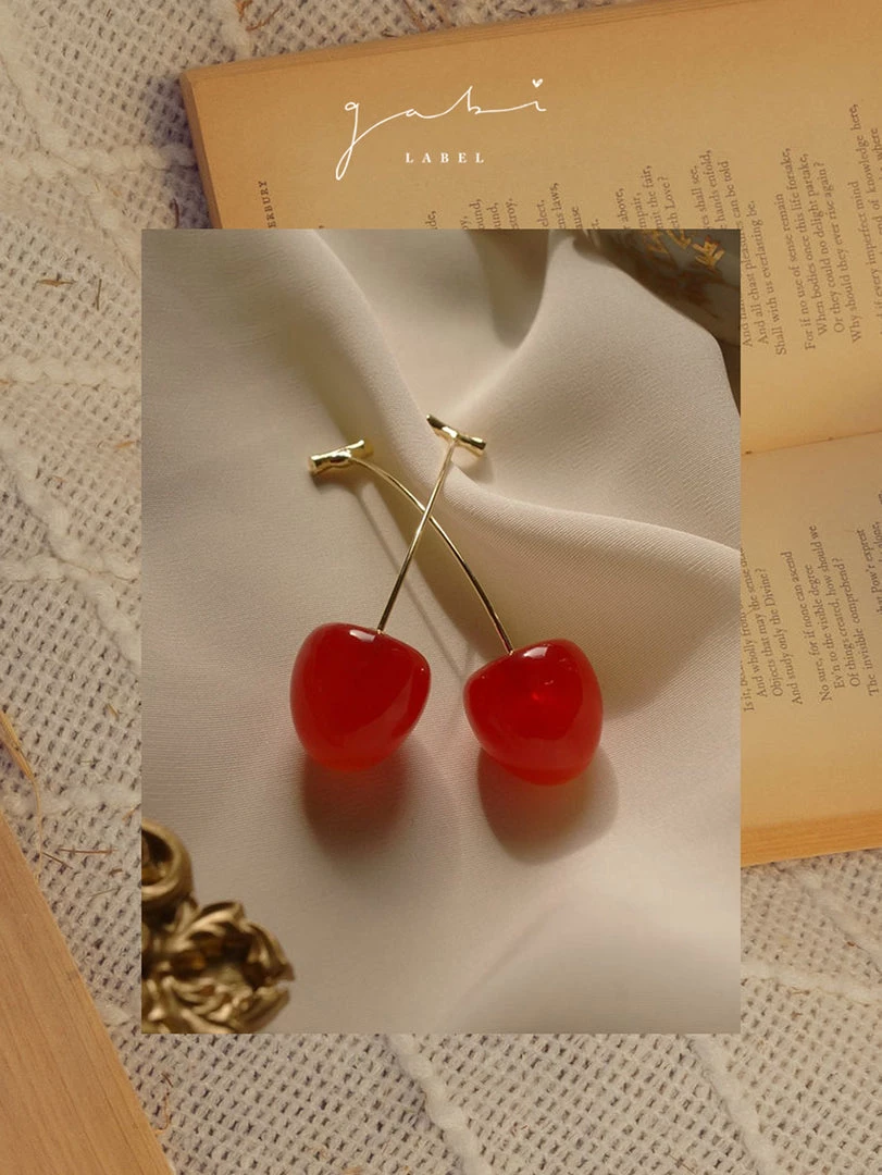 How To Wear: Wear gold stem through earhole. Attach cherry fruit through gold joint securely.