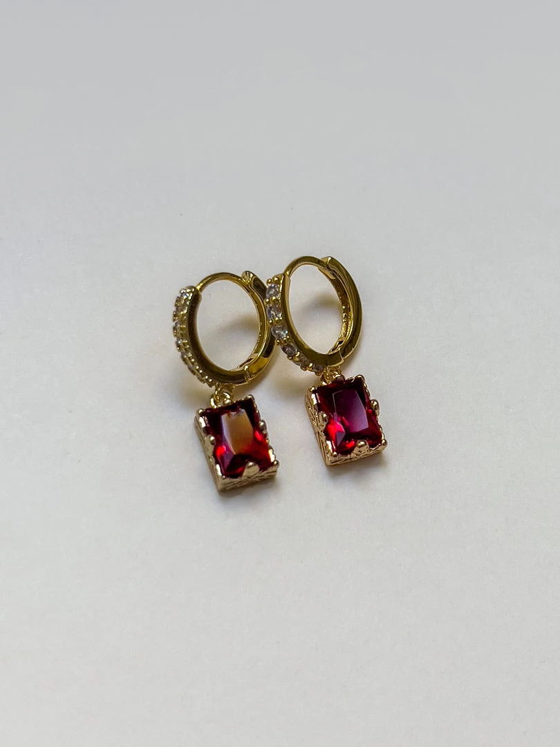 GABI STUDIO / Elegant cubic zirconia-encrusted huggies with a single gemstone encased in a gold frame. Assorted colours available.