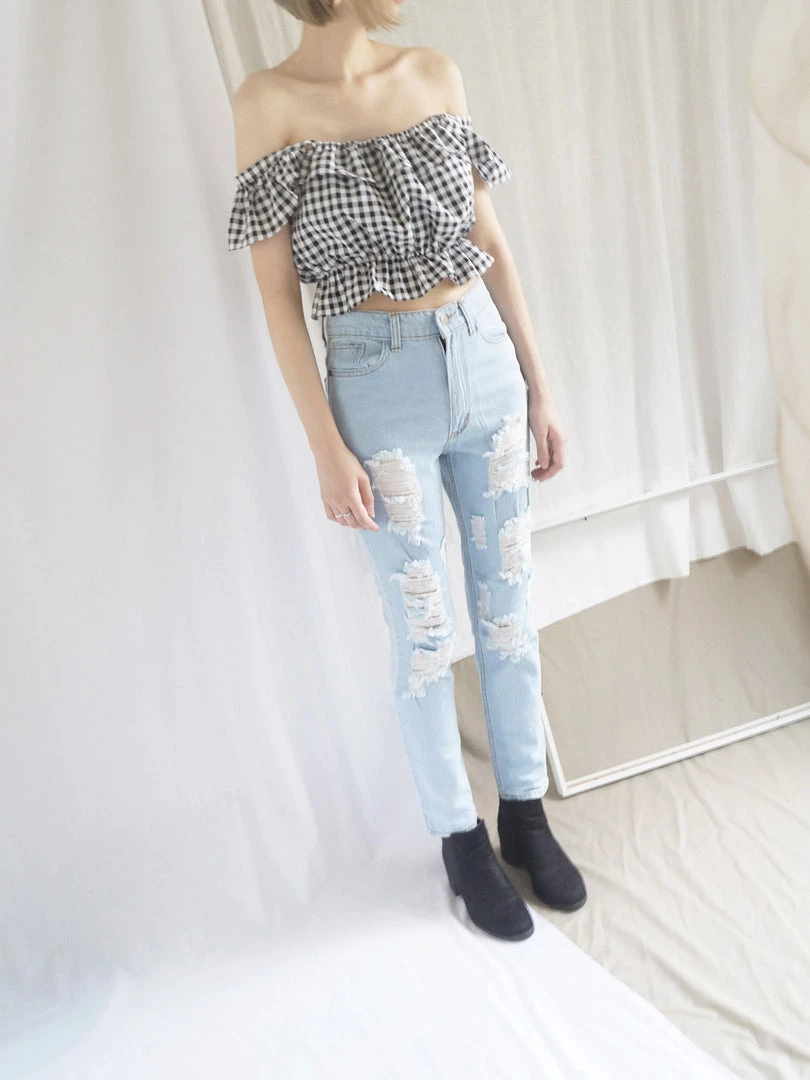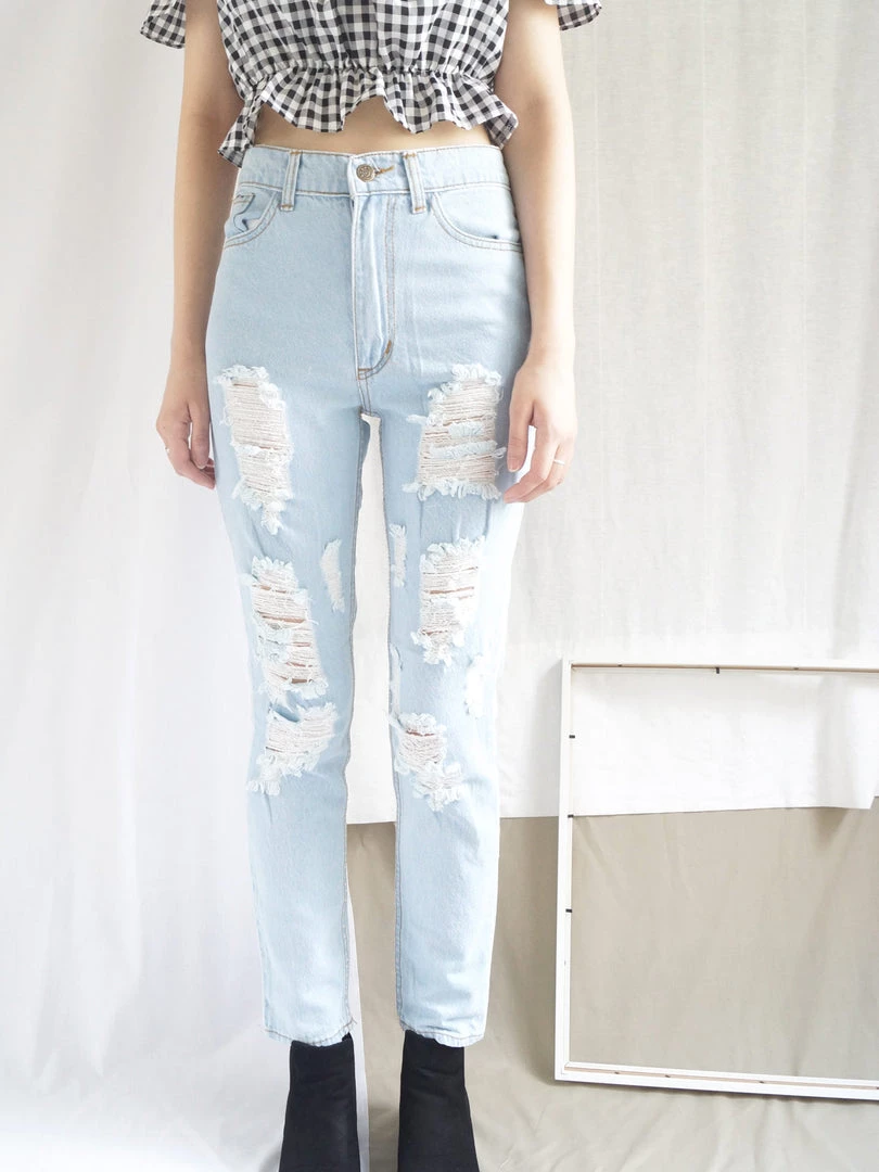 A must-have, stylish pair of ripped jeans. This pair of gorgeous light denim jeans is great for those casual outing days where we can just let our hair down!