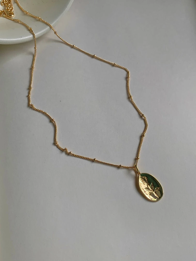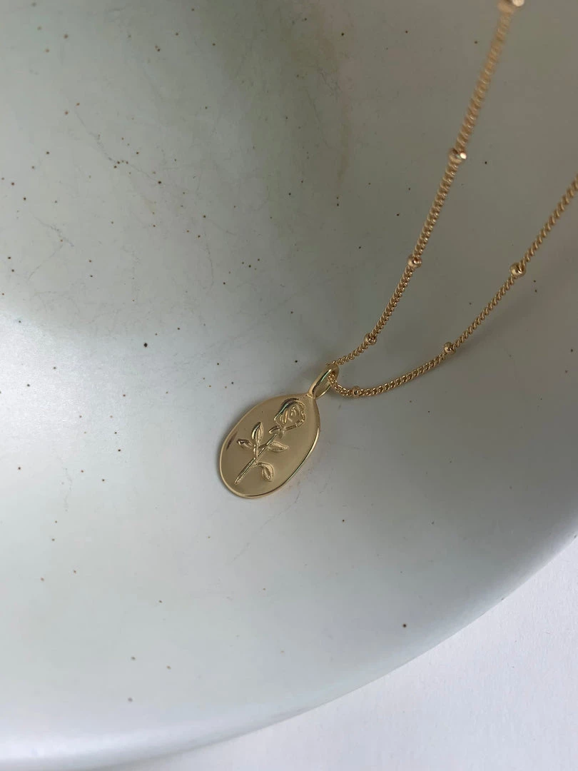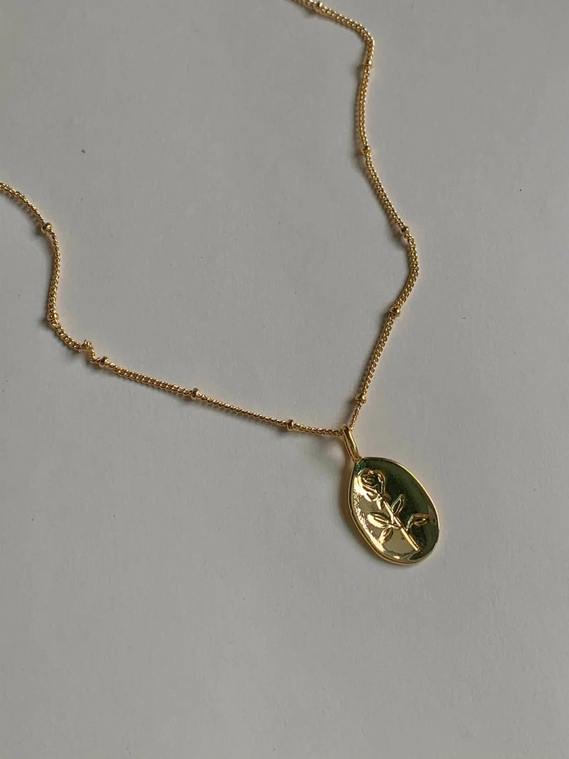 GABI STUDIO / Romantic roseĀ pendantĀ necklace with a vintage flair.