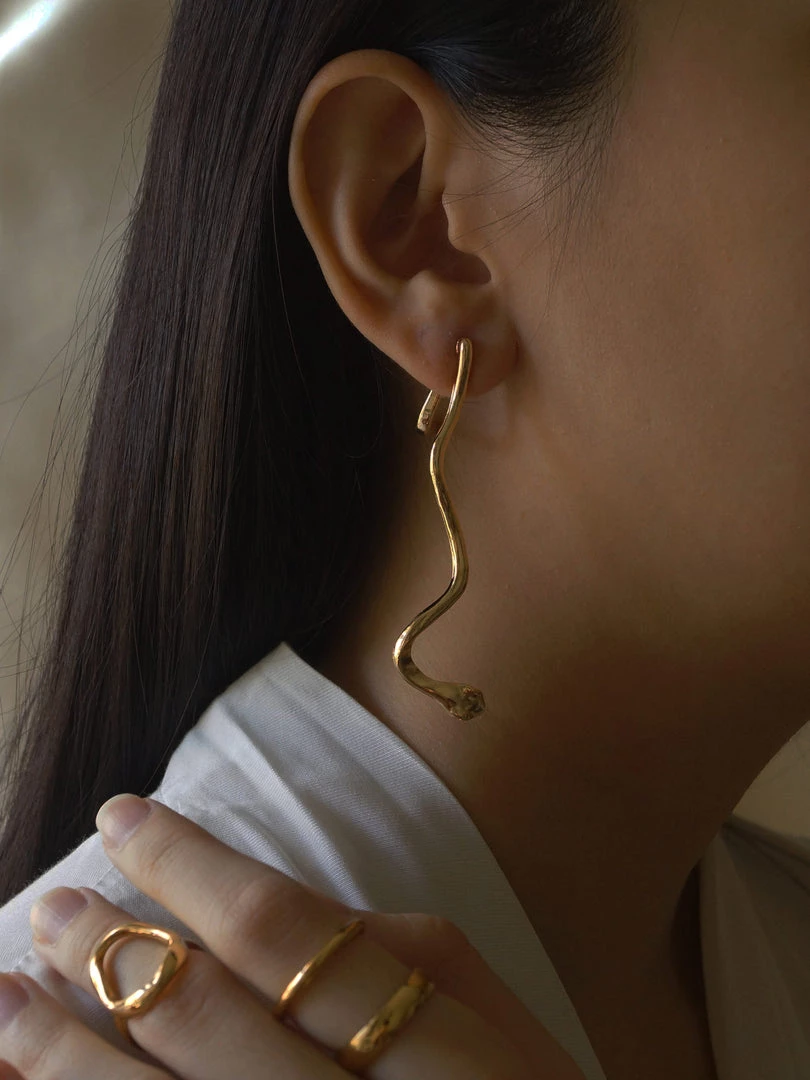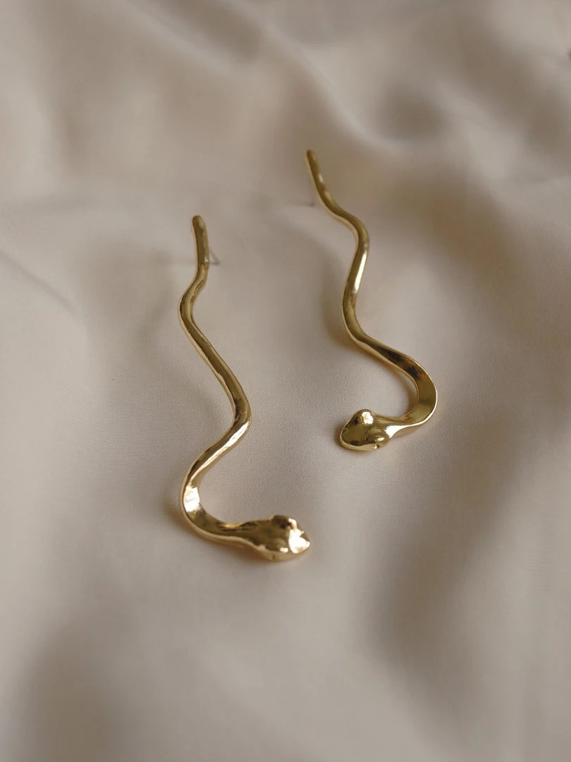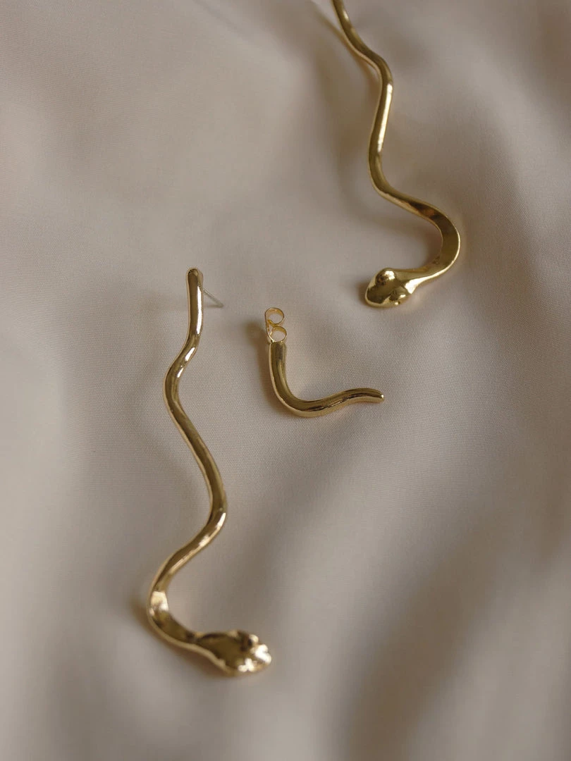Elegant, refined snake earrings. Featuring a pushback closure with a partial snake tail.