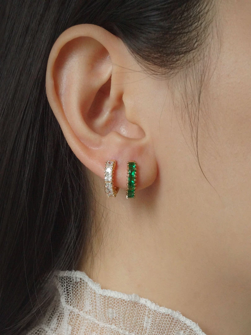 Exquisite, bold colour huggies inlaid with premium cubic zirconia squares.