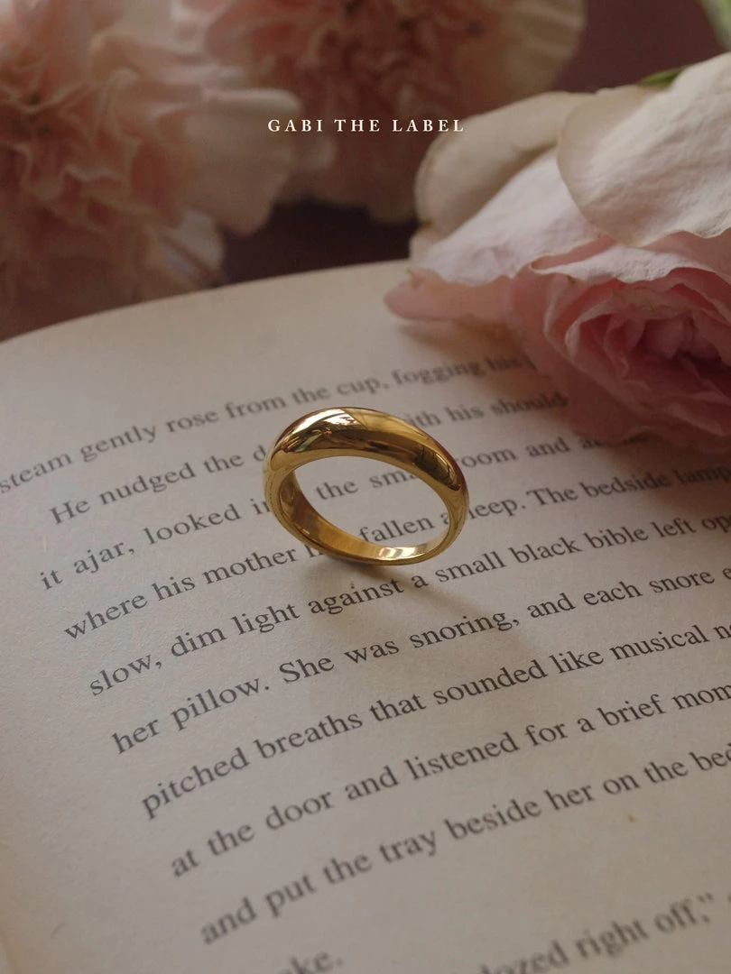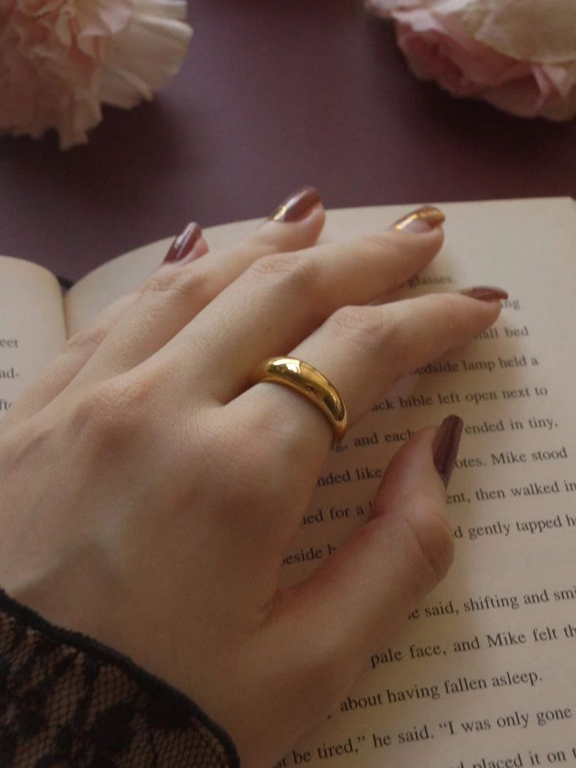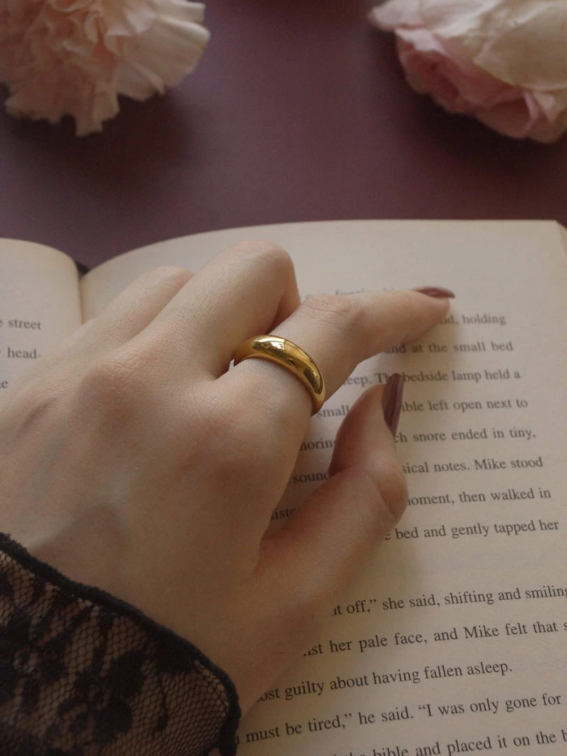 A bold, slightly chunky gold ring – finished with a high shine polish.
